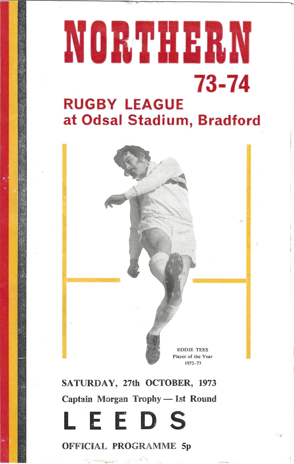 1973/74 Bradford Northern v Leeds (27/10/1973) Captain Morgan Trophy, First Round Rugby League Programme
