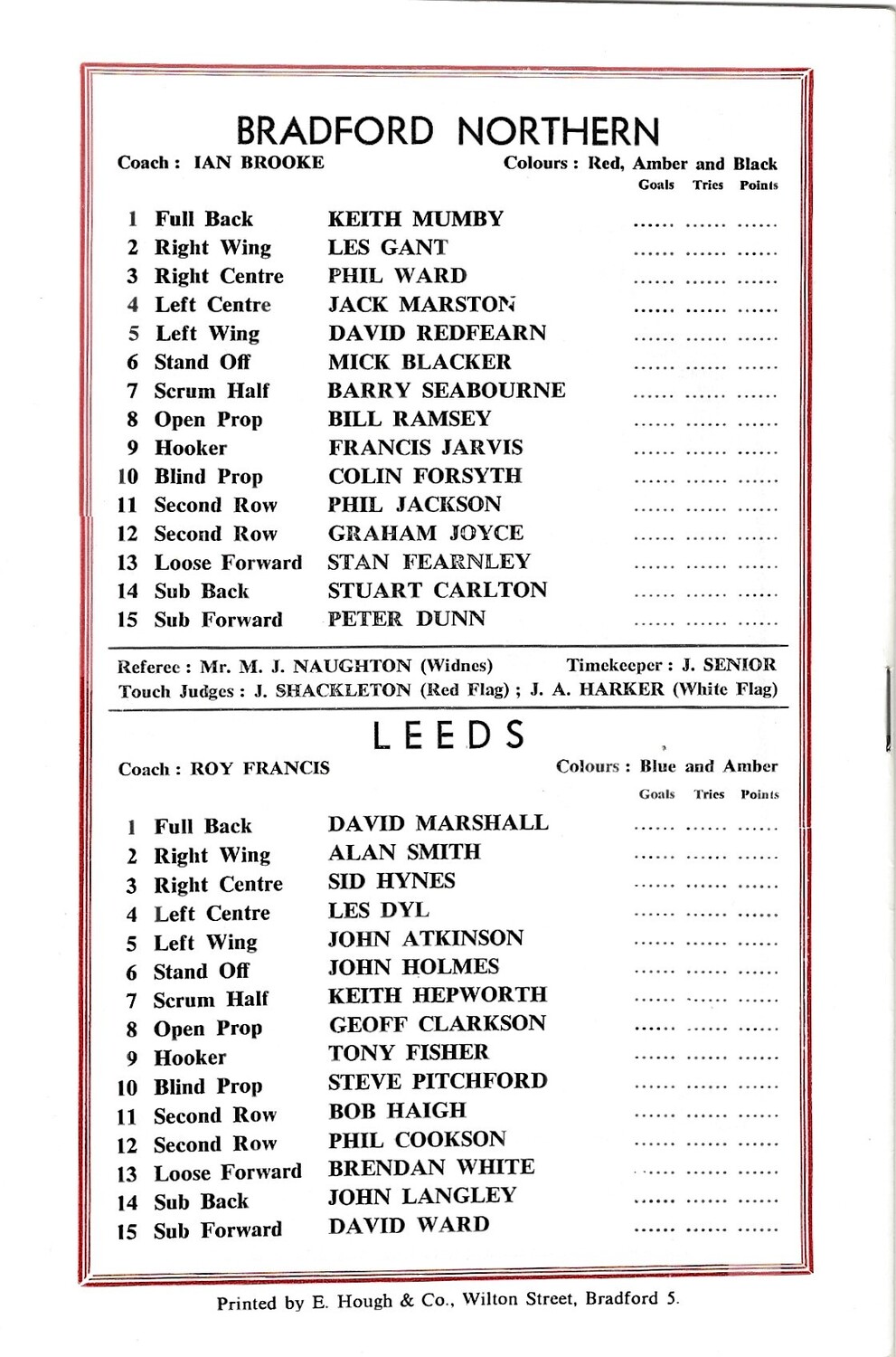 1974/75 Bradford Northern v Leeds Rugby League programme