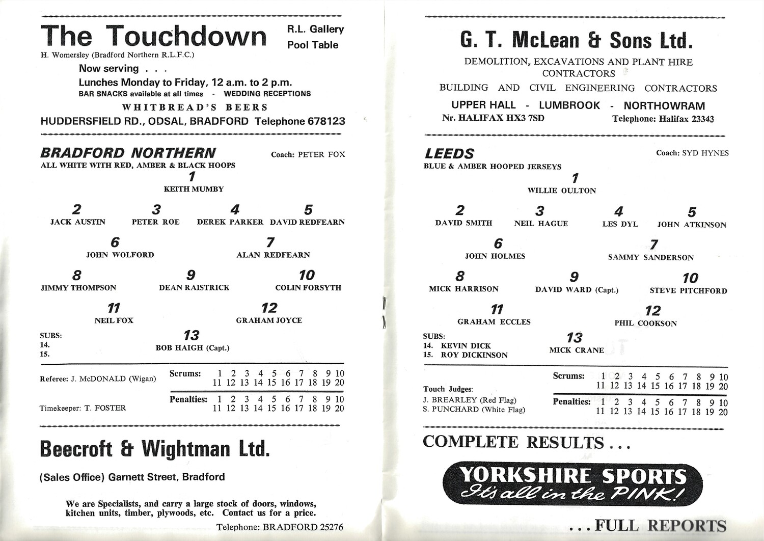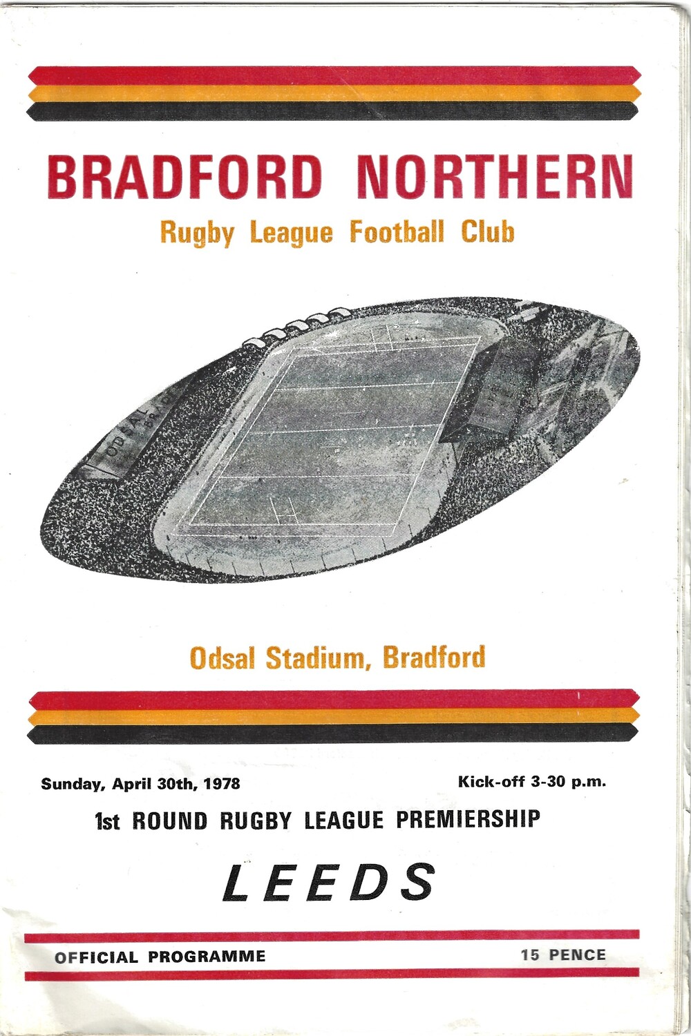 1977/78 Bradford Northern v Leeds (30/04/1978) Rugby League Premiership, First Round Rugby League Programme