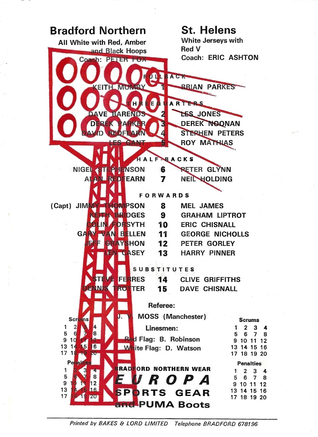 1979/80 Bradford Northern v St. Helens Rugby League Programme (First Floodlit Match)