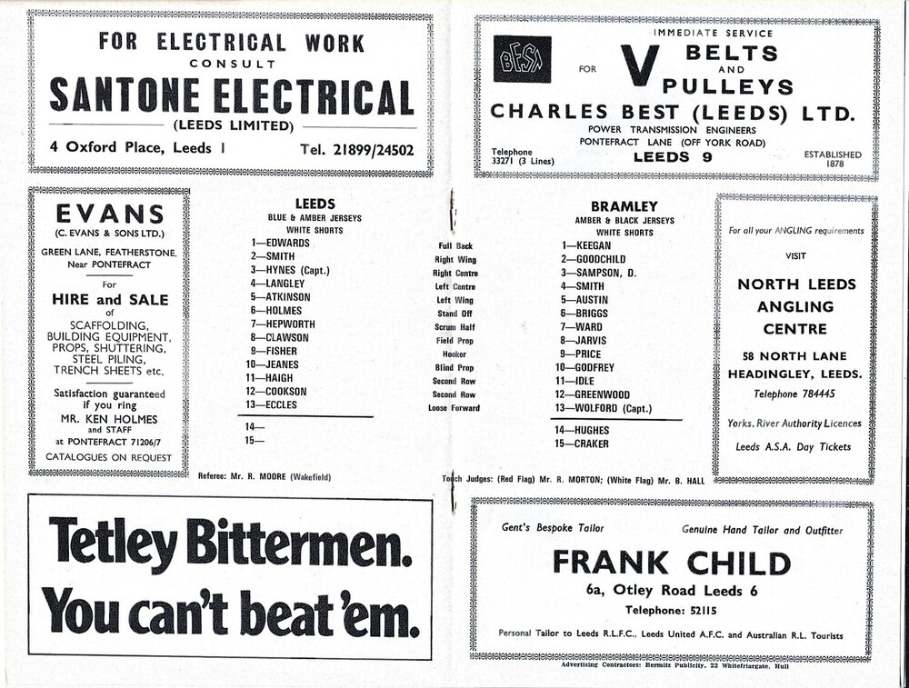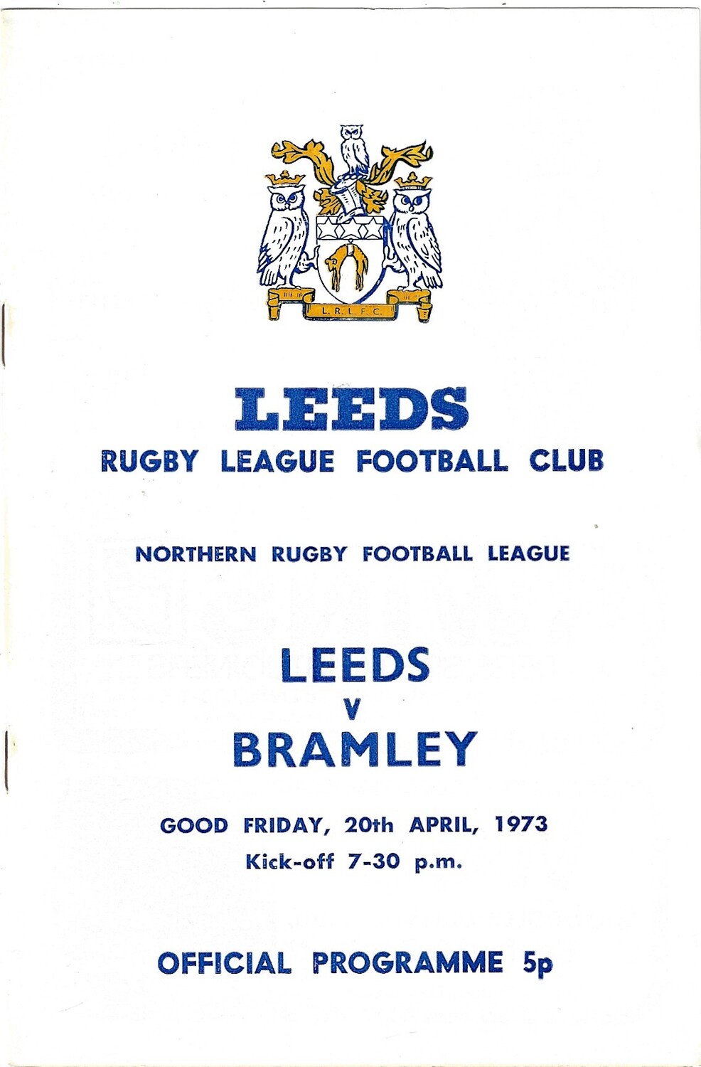 1972/73 Leeds v Bramley (20/04/1973) Rugby League Programme