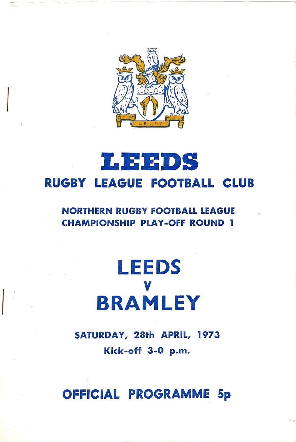 1972/73 Leeds v Bramley (28/04/1973) Championship Play-off Round 1 Rugby League Programme