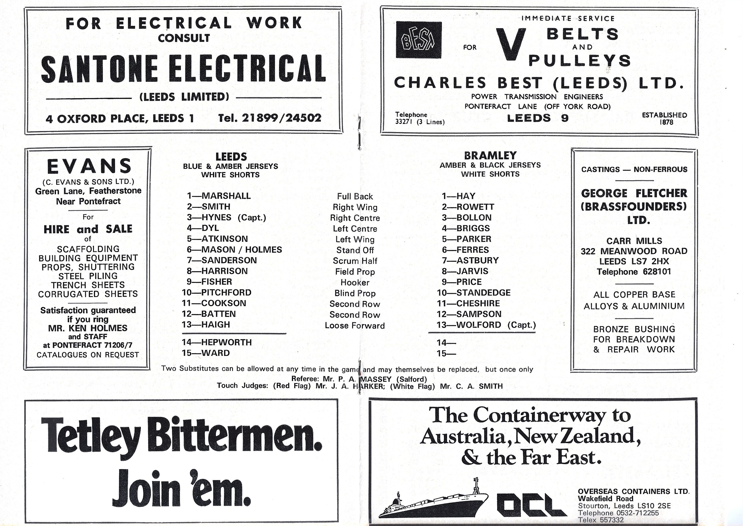 1974/75 Leeds v Bramley (28/03/1975) Rugby League Programme