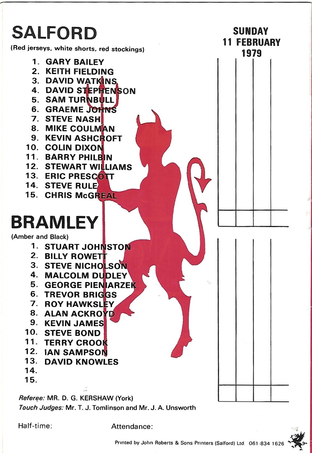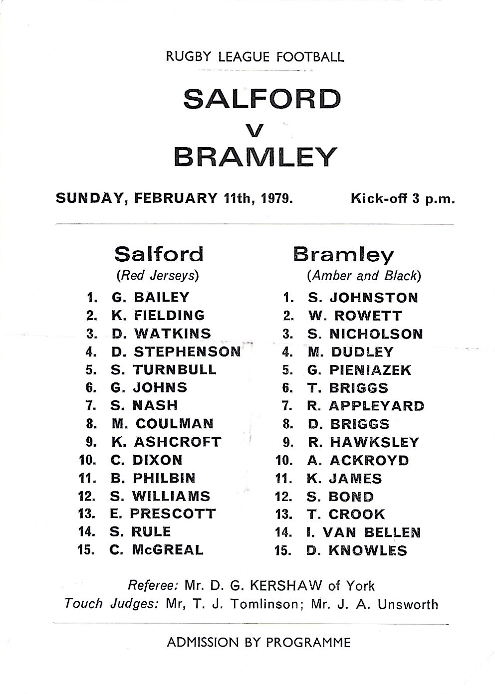 1978/79 Salford v Bramley State Express Challenge Cup 1st Round Rugby League Programme & Teamsheet