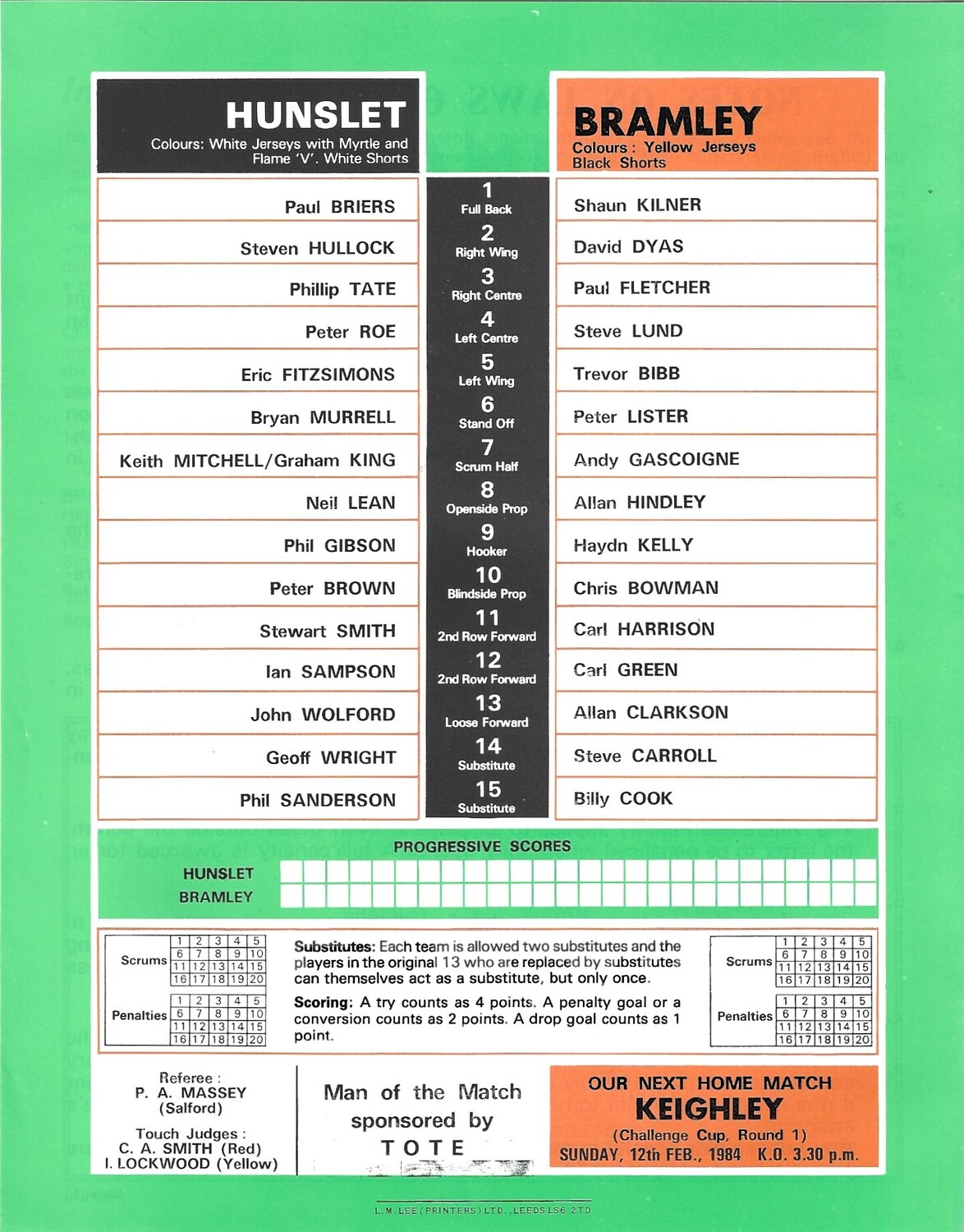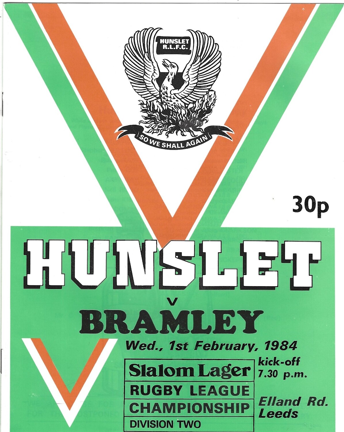 1983/84 Hunslet v Bramley Rugby League programme