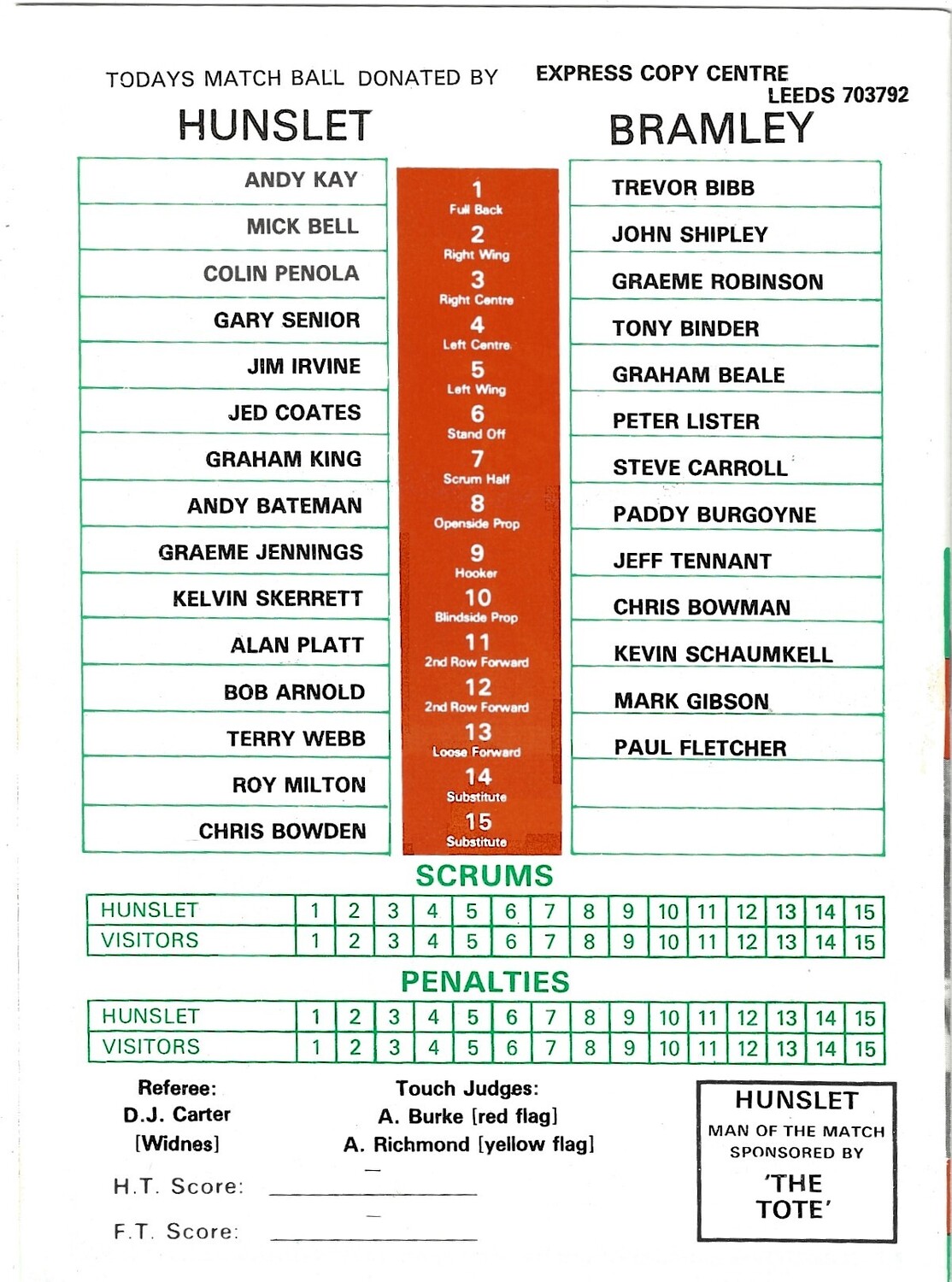 1986/87 Hunslet v Bramley Rugby League programme