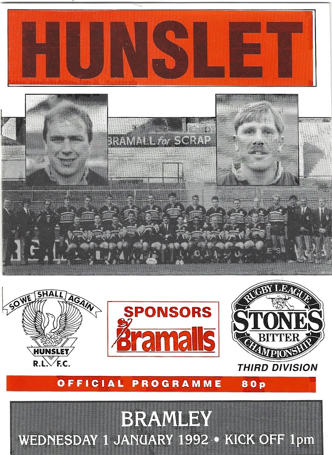 1991/92 Hunslet v Bramley Rugby League programme
