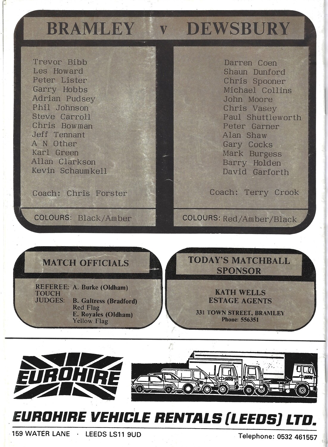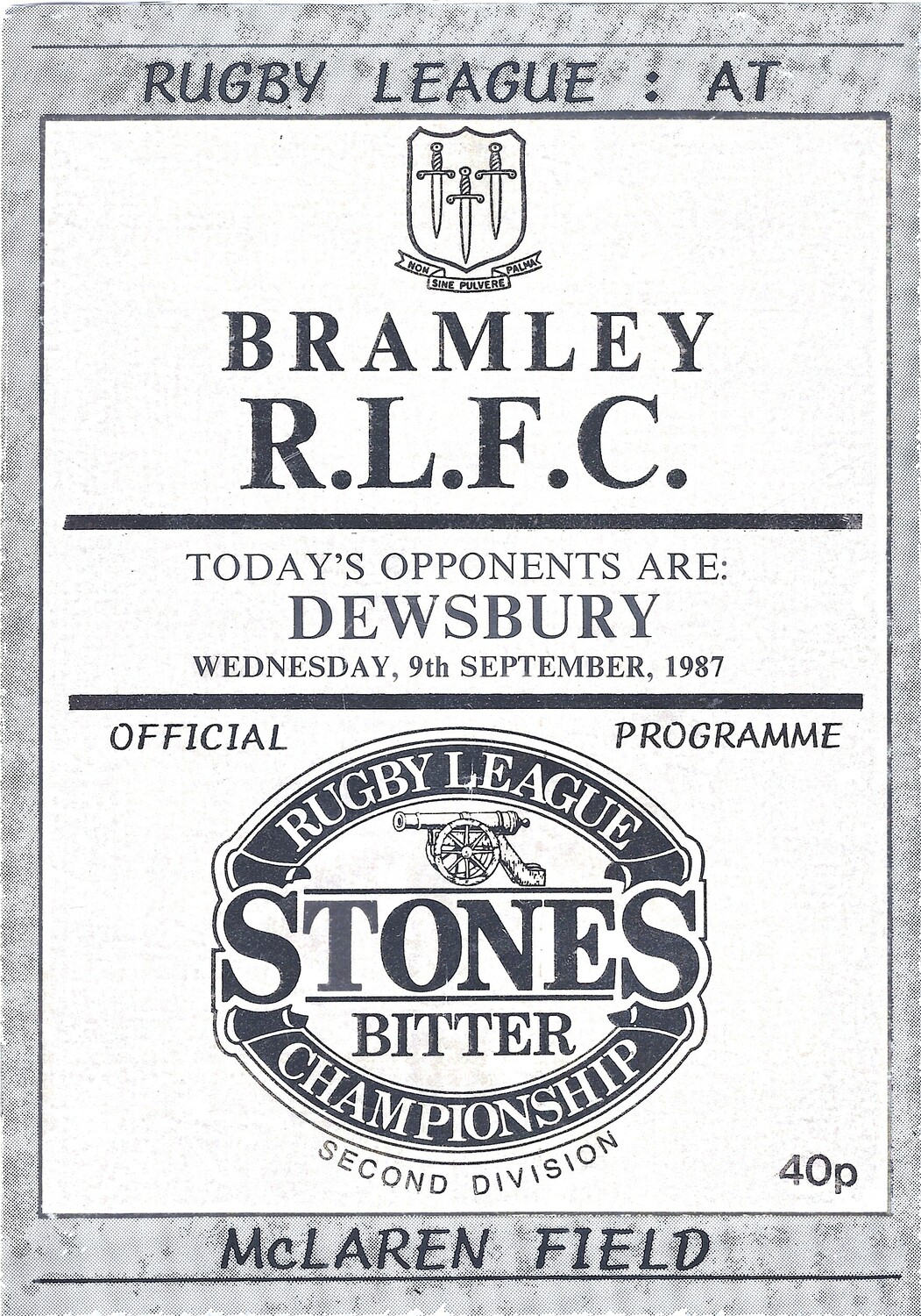 1987/88 Bramley v Dewsbury (09/09/1987) Rugby League Programme