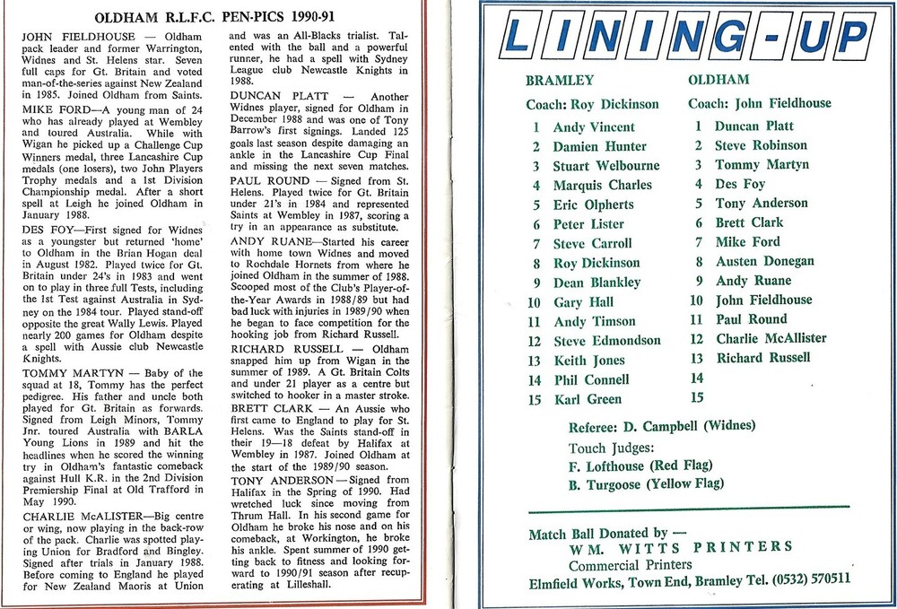 1990/91 Bramley v Oldham Silk Cut Challenge Cup 1st Round Rugby League Programme