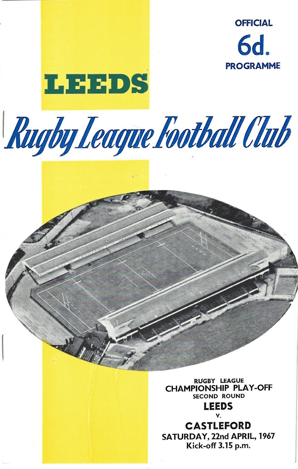 1966/67 Leeds v Castleford Championship Play-Off 2nd Round Rugby League programme