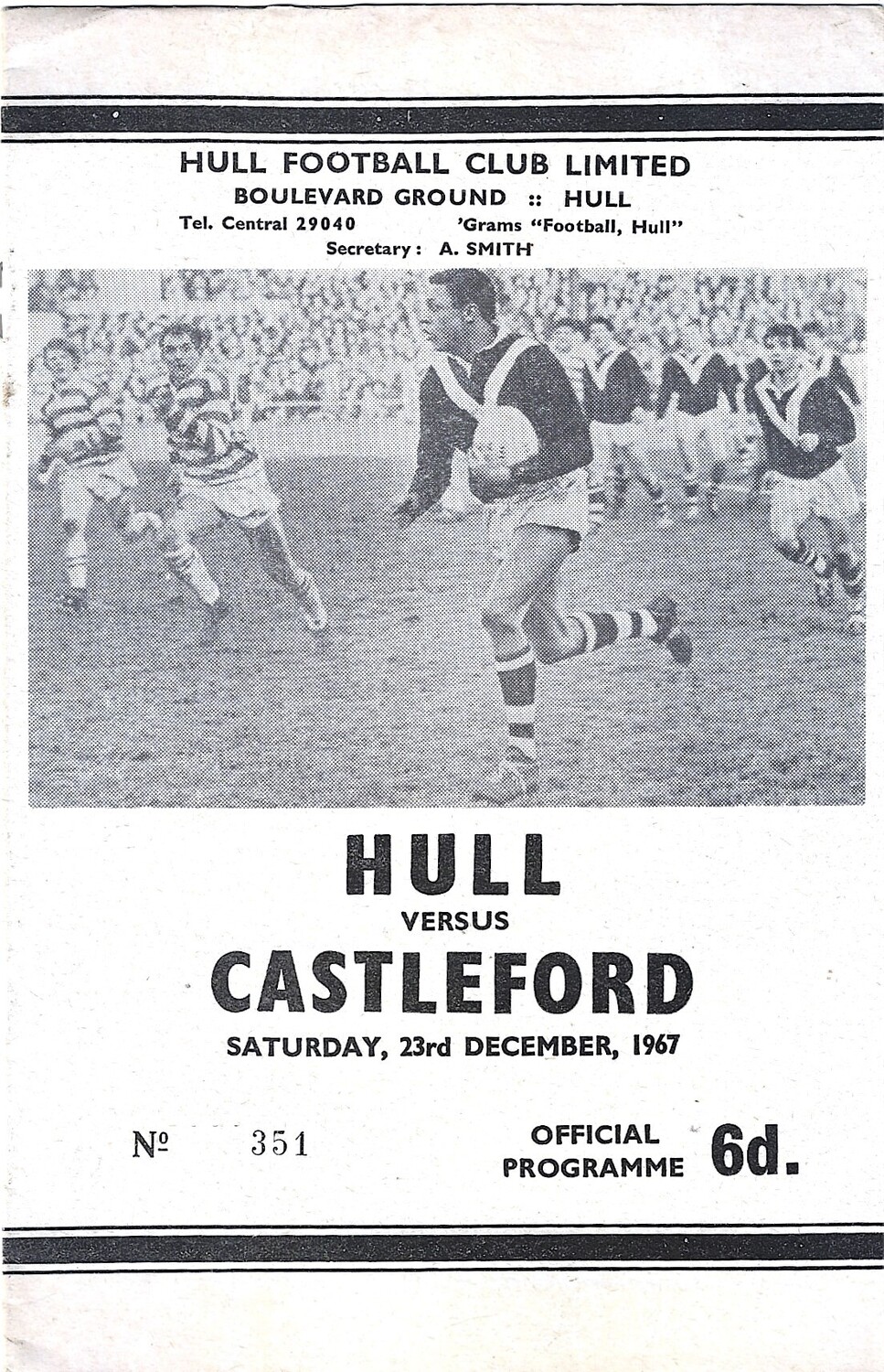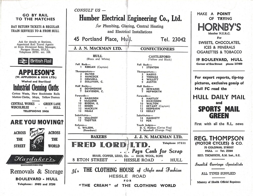 1967/68 Hull v Castleford Rugby League Programme