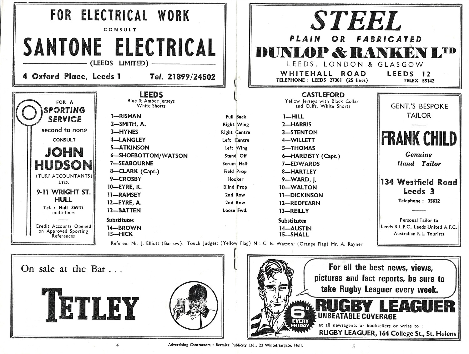 1967/68 Leeds v Castleford (27/01/1968) Rugby League Programme