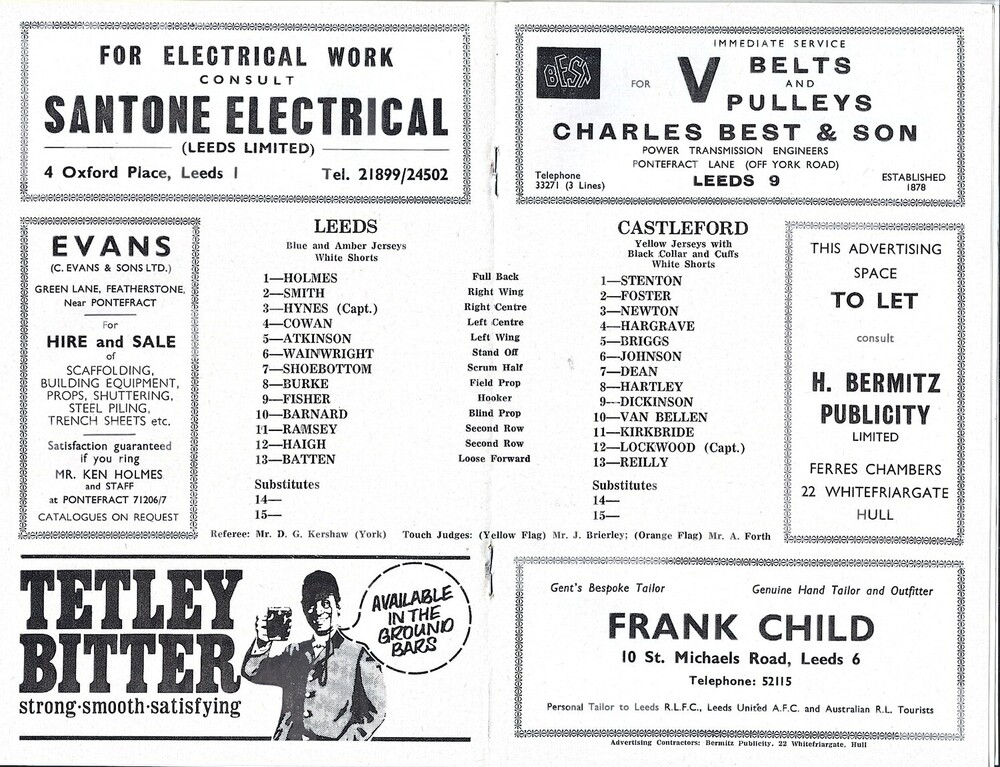 1970/71 Leeds v Castleford (26/12/1970) Rugby League programme