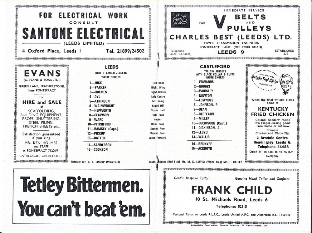 1971/72 Leeds v Castleford (14/03/1972) Rugby League programme
