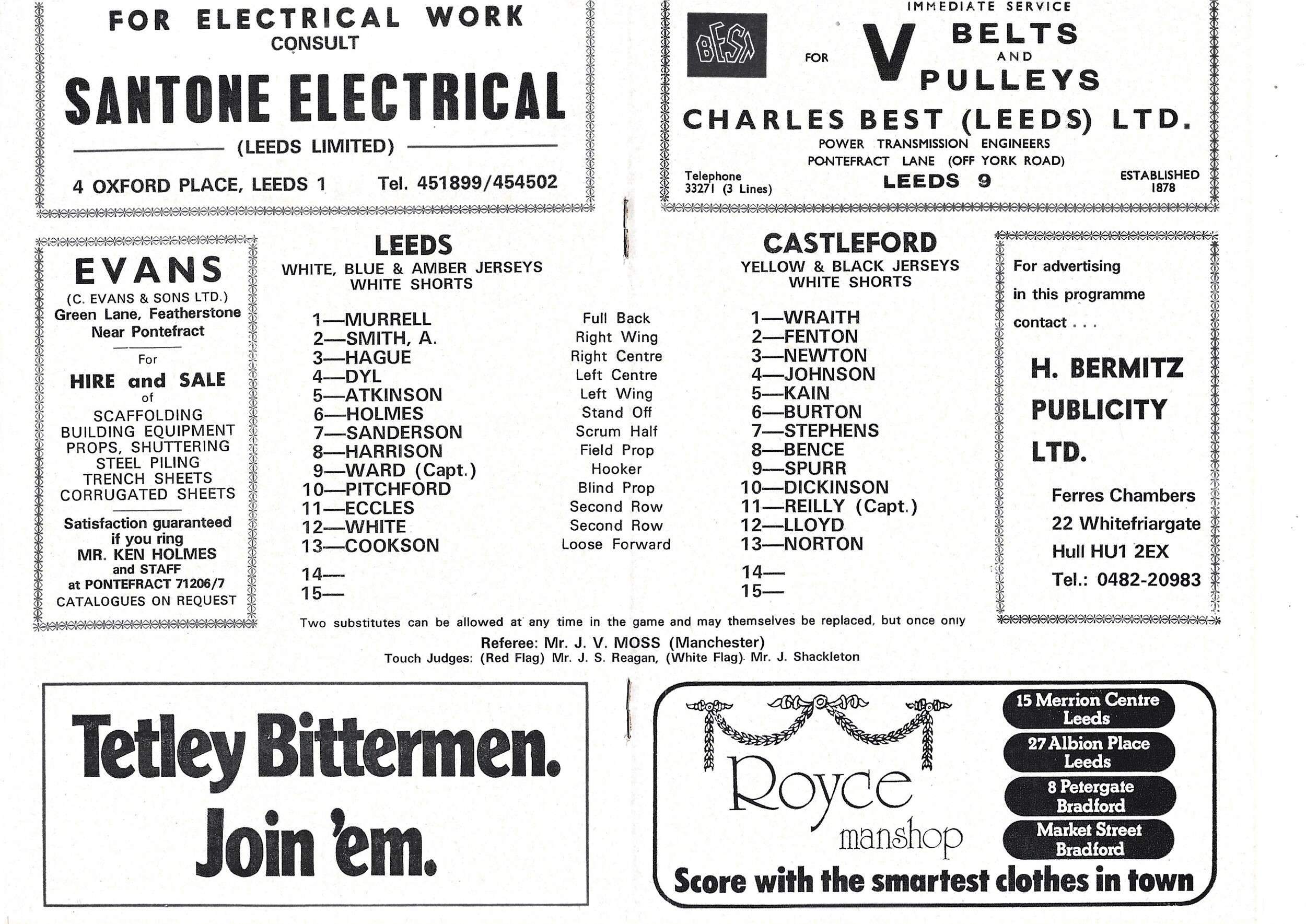 1976/77 Leeds v Castleford (09/04/1977) Rugby League Programme