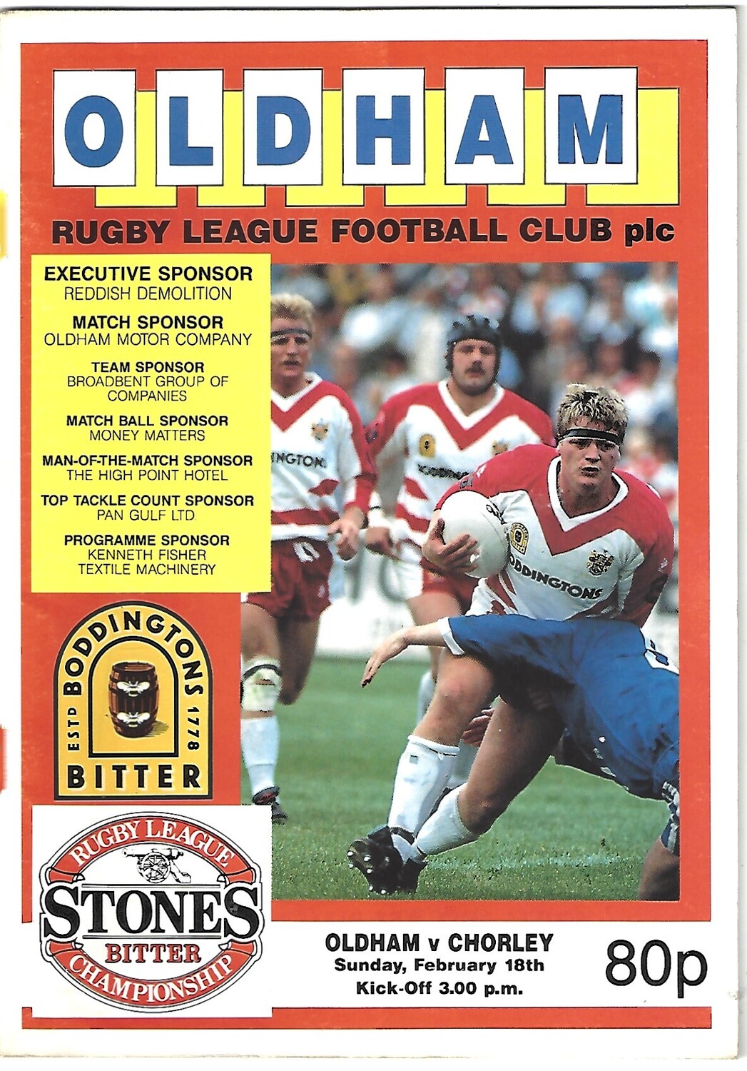 1989/90 Oldham v Chorley Borough Rugby League Programme