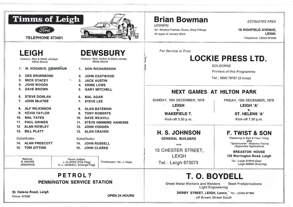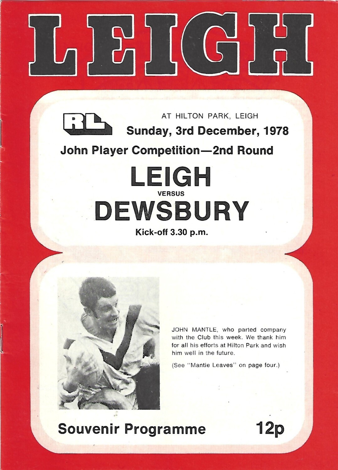 1977/78 Leigh v Dewsbury John Player Trophy 2nd Round Rugby League Programme