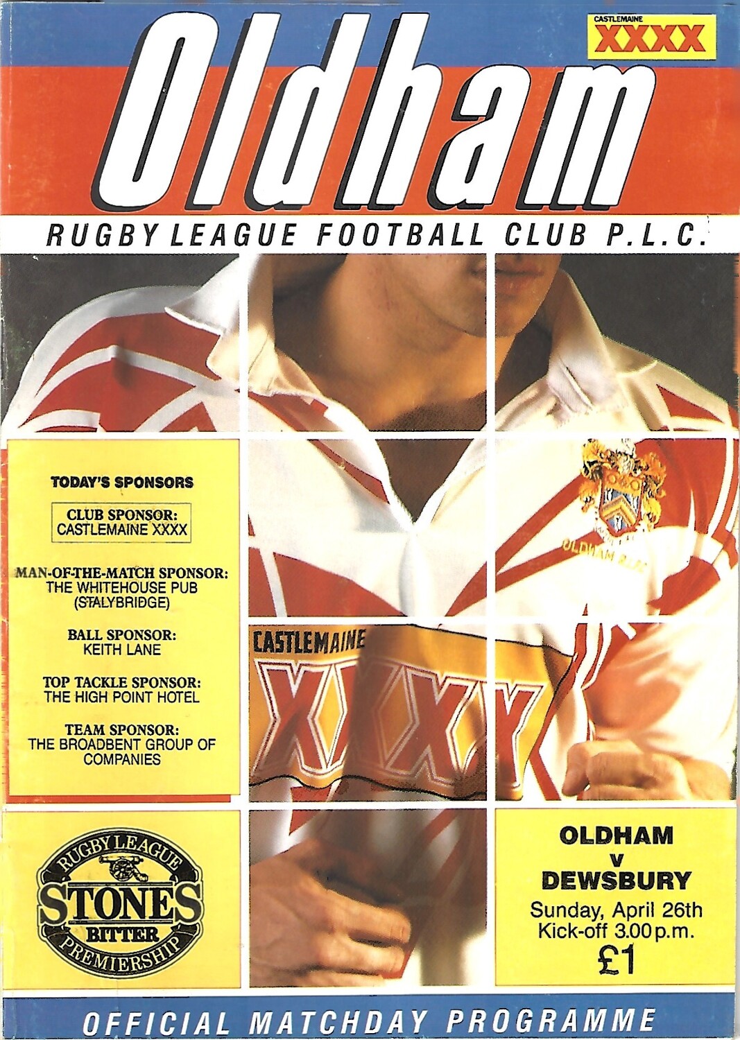 1991/92 Oldham v Dewsbury (26/04/1992) Rugby League Programme