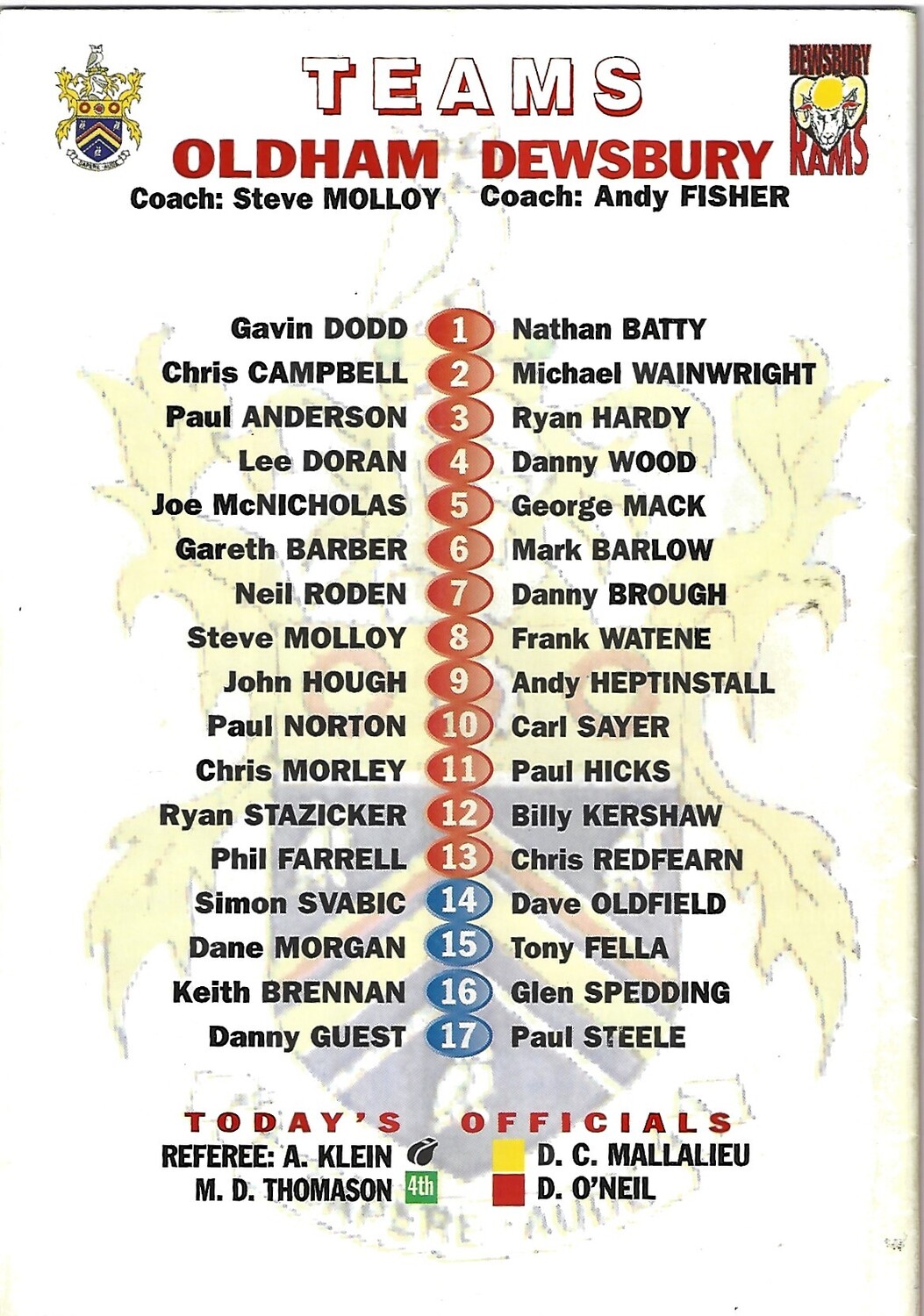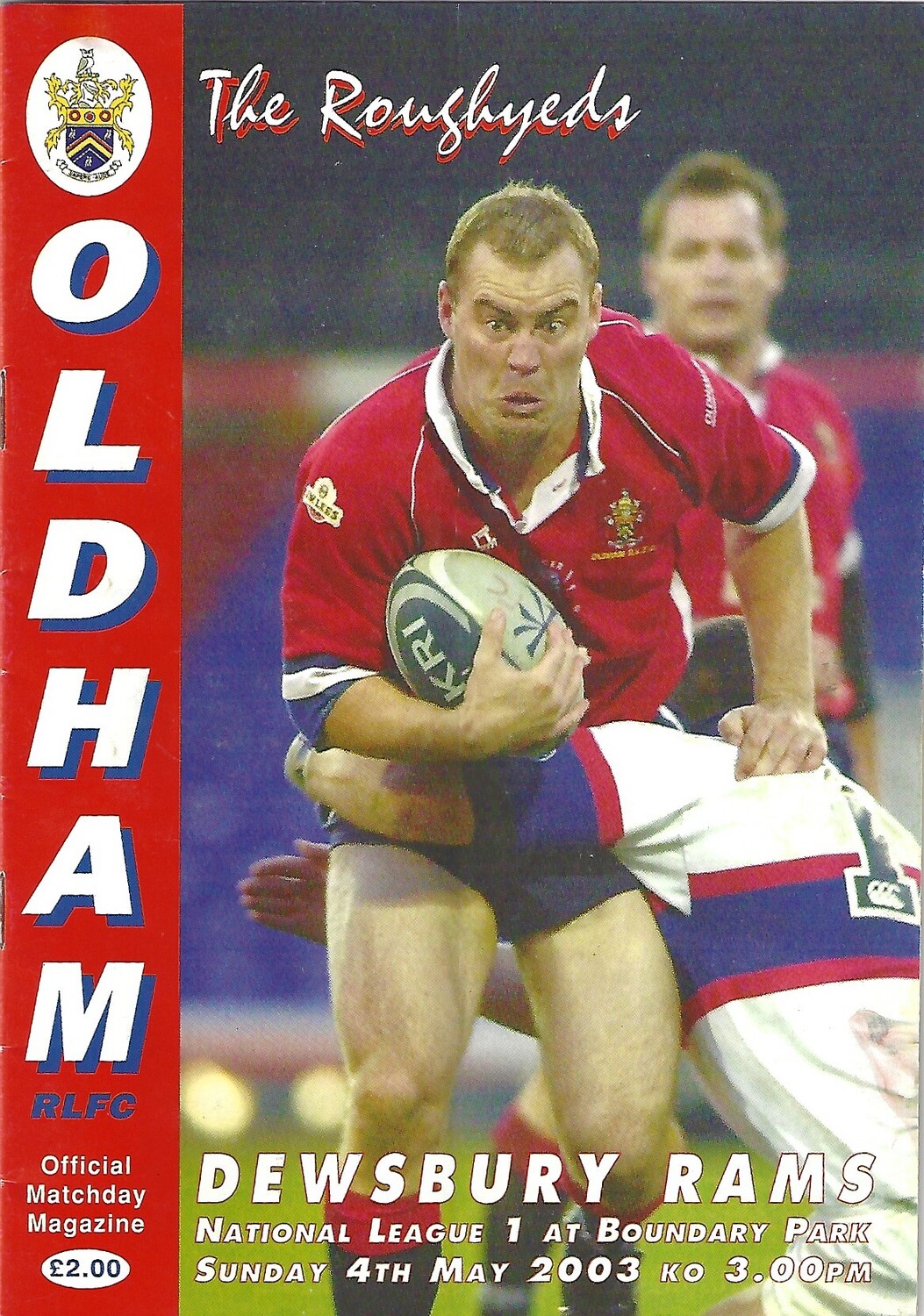 2003 Oldham v Dewsbury Rams Rugby League Programme