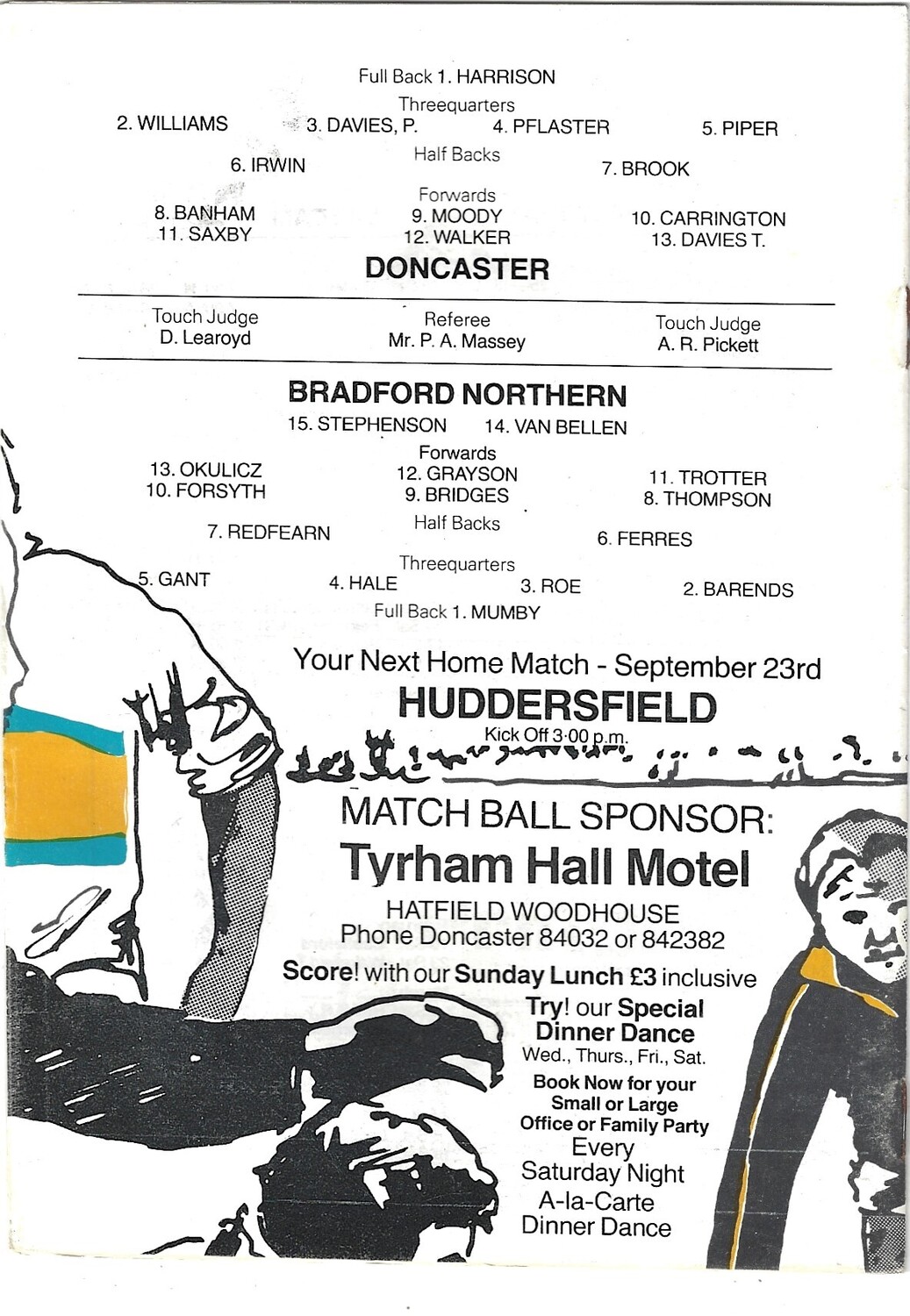 1979/80 Doncaster v Bradford Northern John Player Trophy 1st Round Rugby League Programme