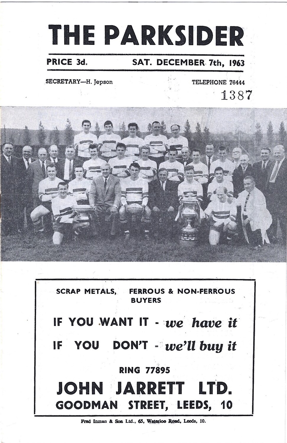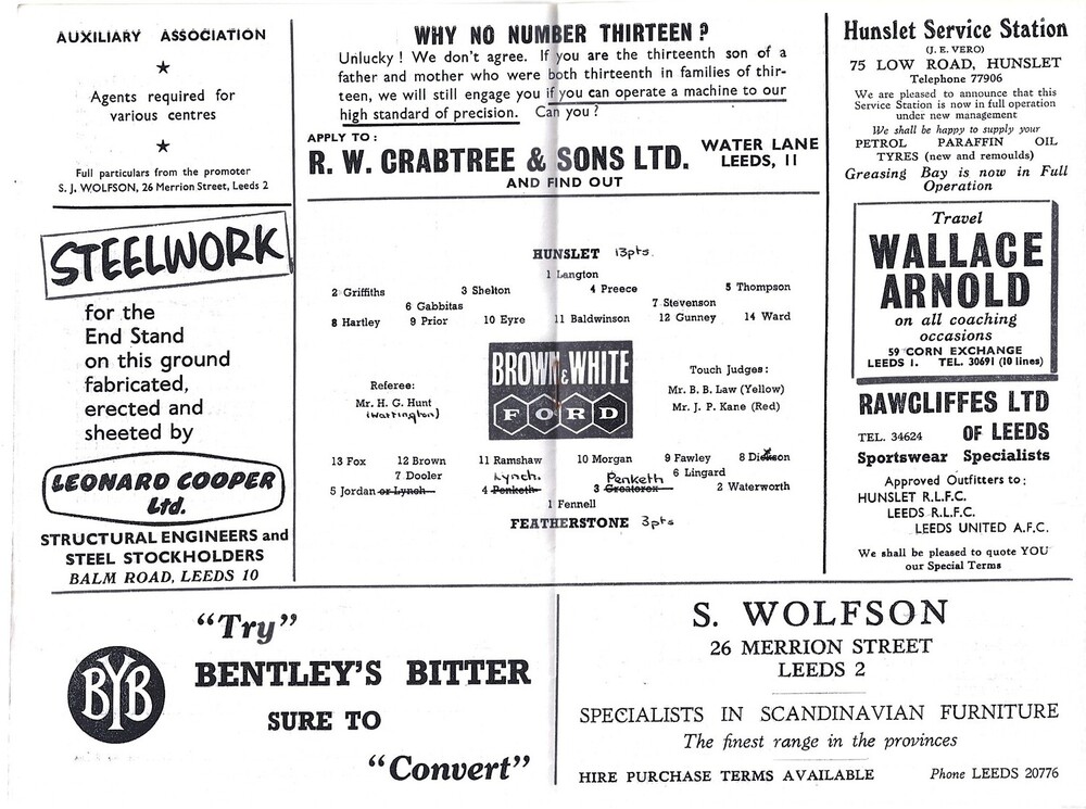 1963/64 Hunslet v Featherstone Rovers Rugby League Programme