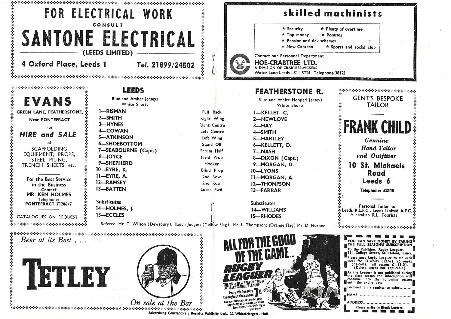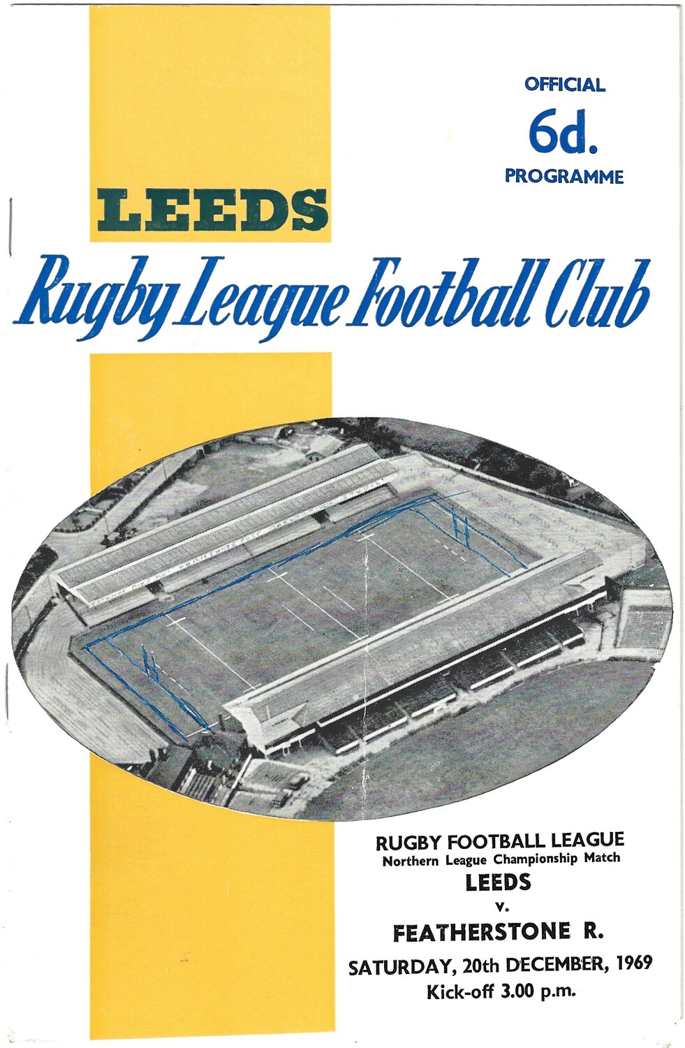 1969/70 Leeds v Featherstone Rovers (20/12/1969) Rugby League Programme