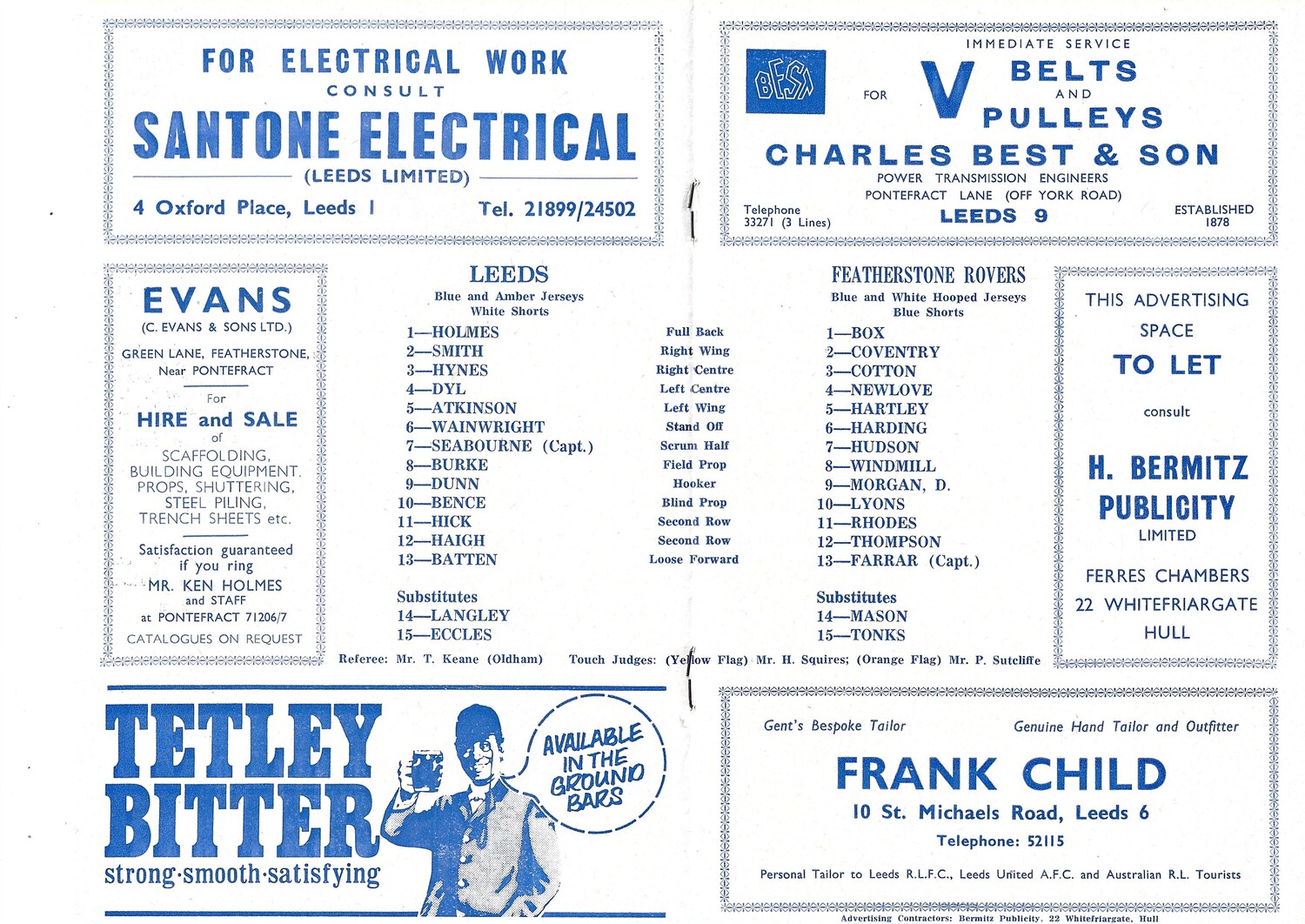 1970/71 Leeds v Featherstone Rovers (10/10/1970) Rugby League Programme
