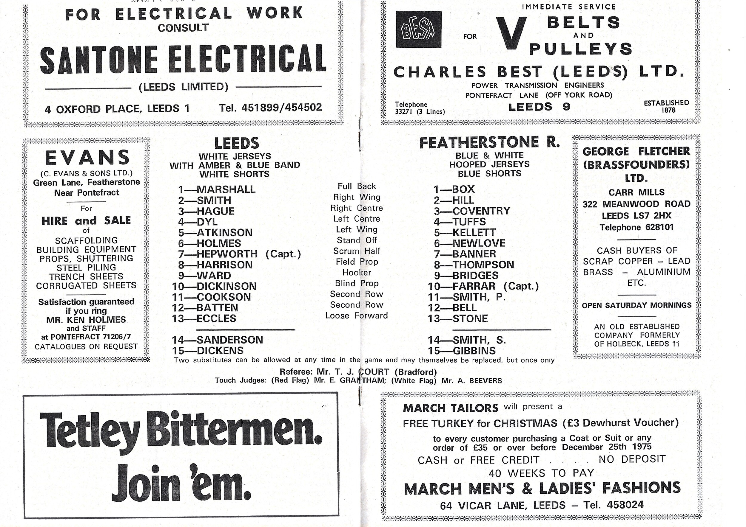 1975/76 Leeds v Featherstone Rovers (13/12/1975) Rugby League Programme