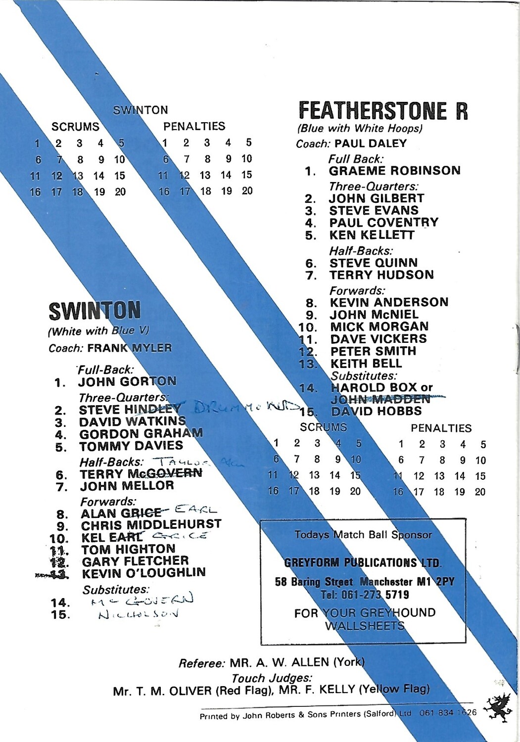 1979/80 Swinton v Featherstone Rovers Rugby League Programme