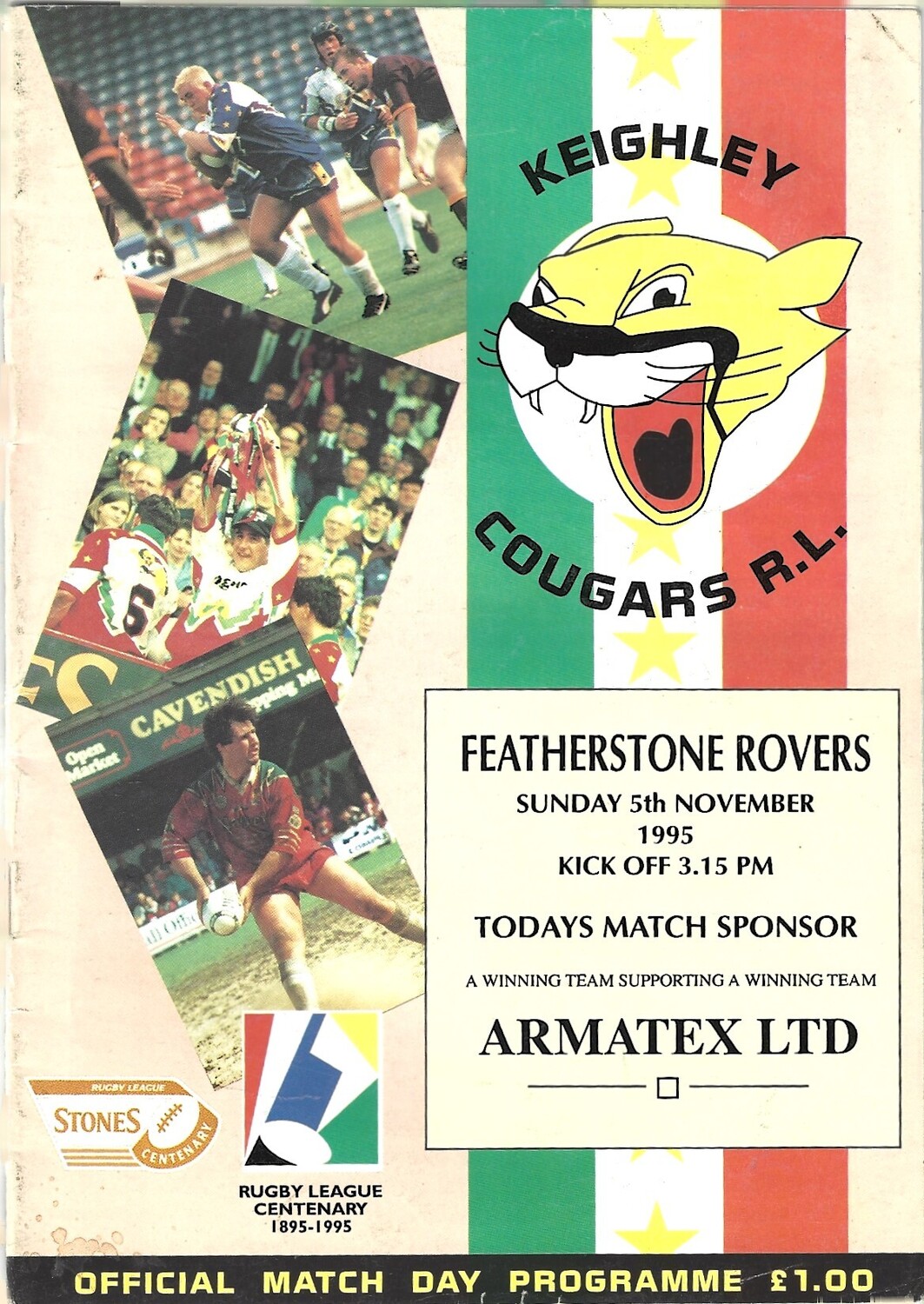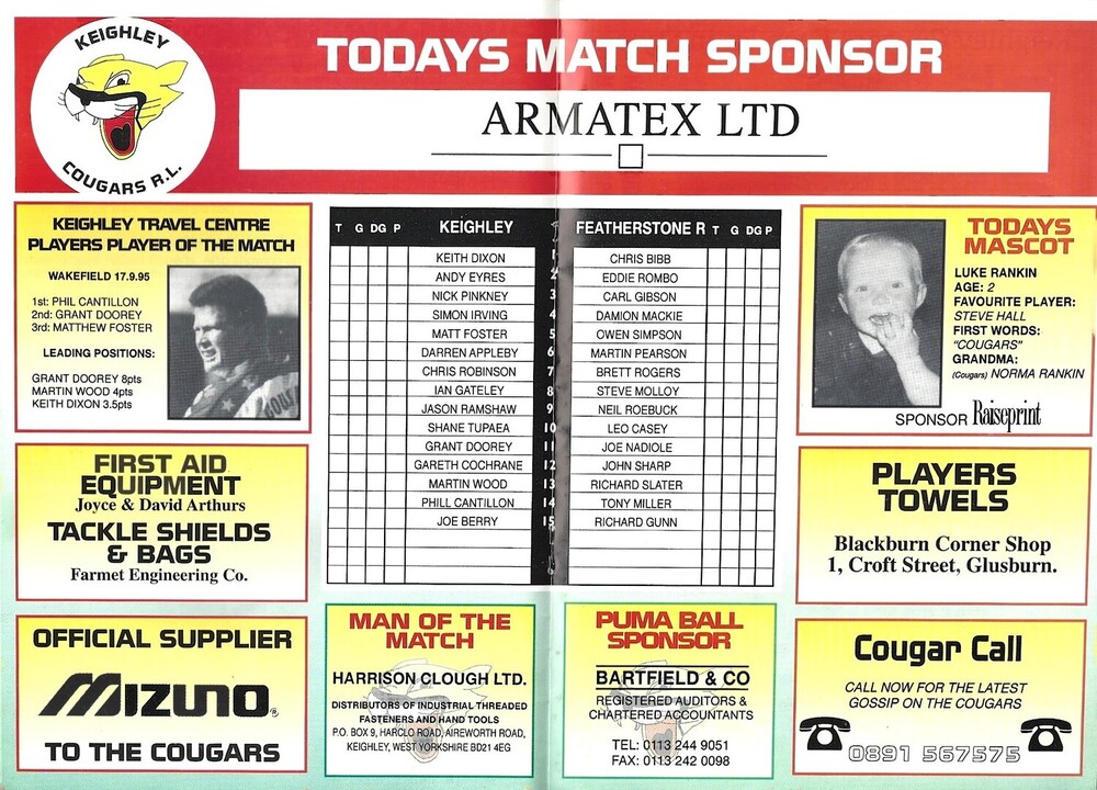 1995/96 Keighley Cougars v Featherstone Rovers Rugby League Programme