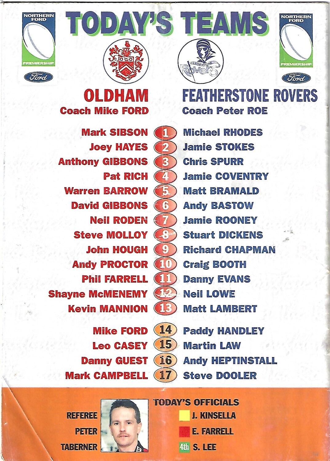 2000 Oldham v Featherstone Rovers Rugby League Programme