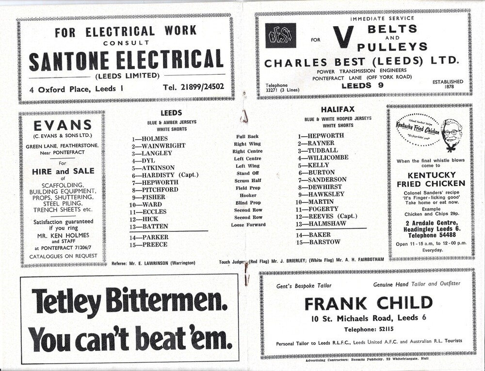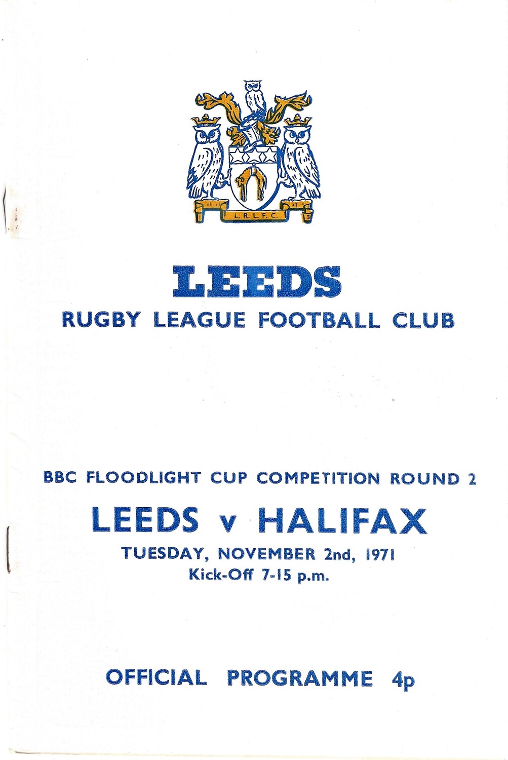 1971/72 Leeds v Halifax (02/11/1971) BBC 2 Floodlight Cup Competition Round 2 Rugby League programme
