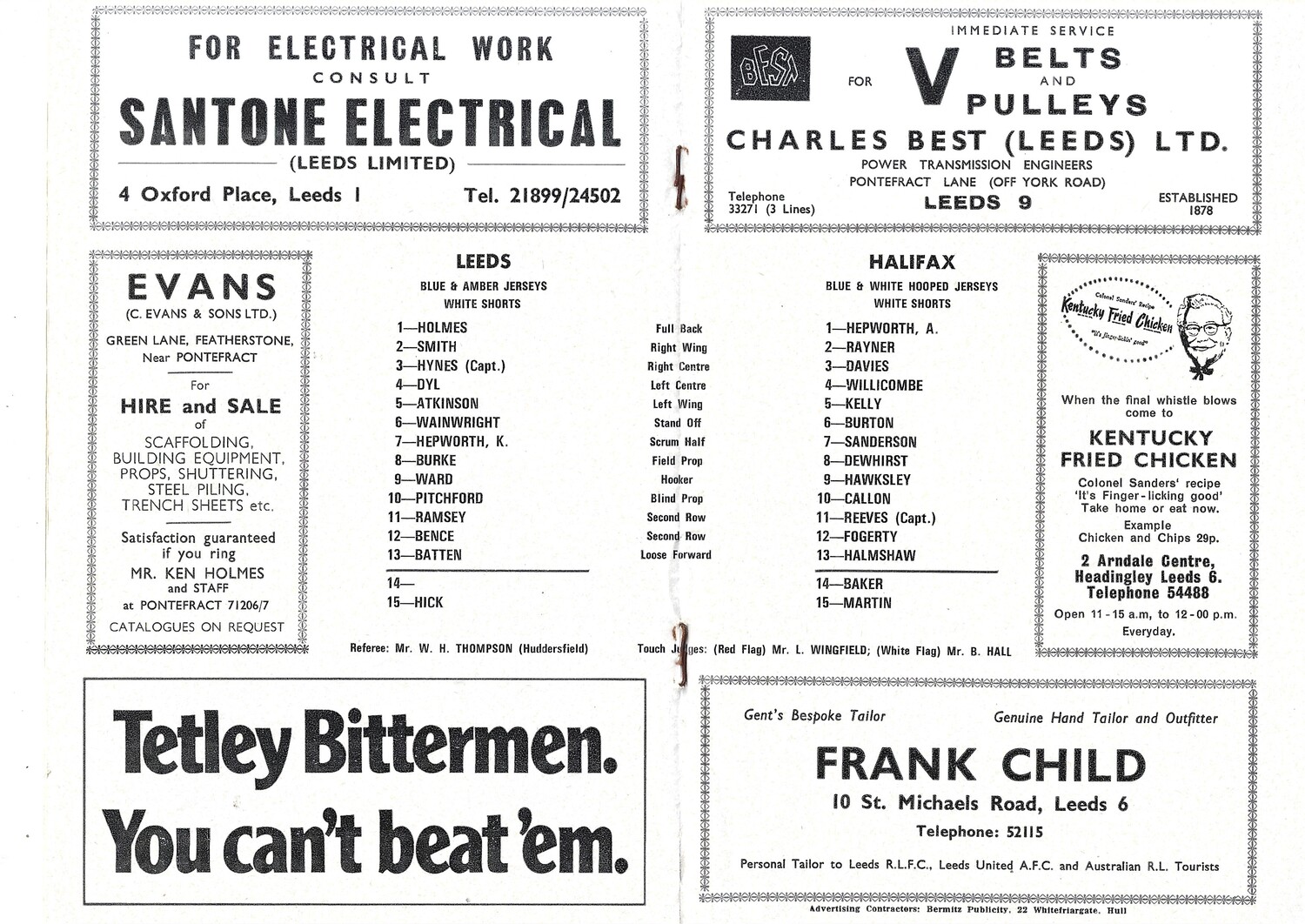 1971/72 Leeds v Halifax (04/12/1971) Rugby League Programme