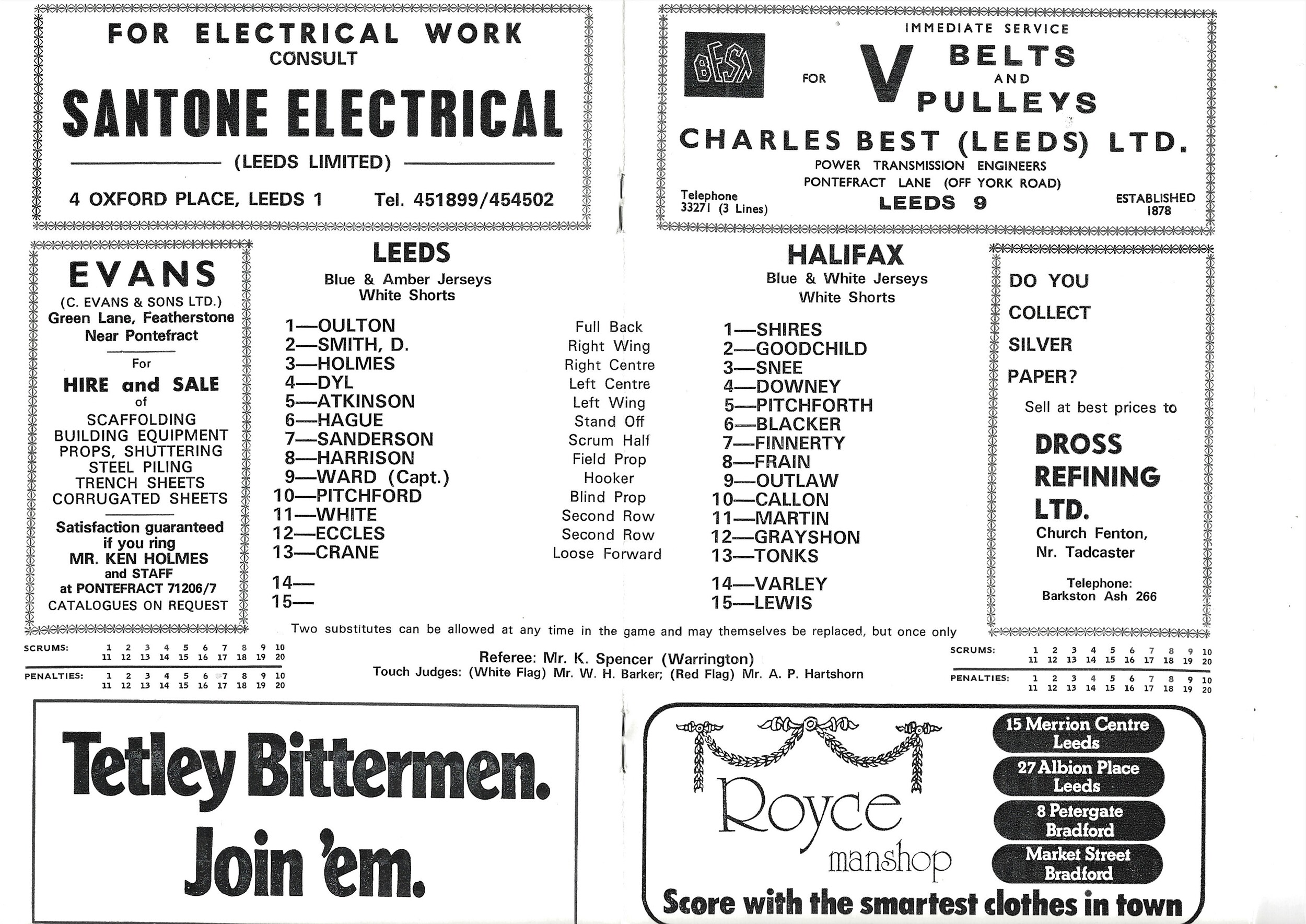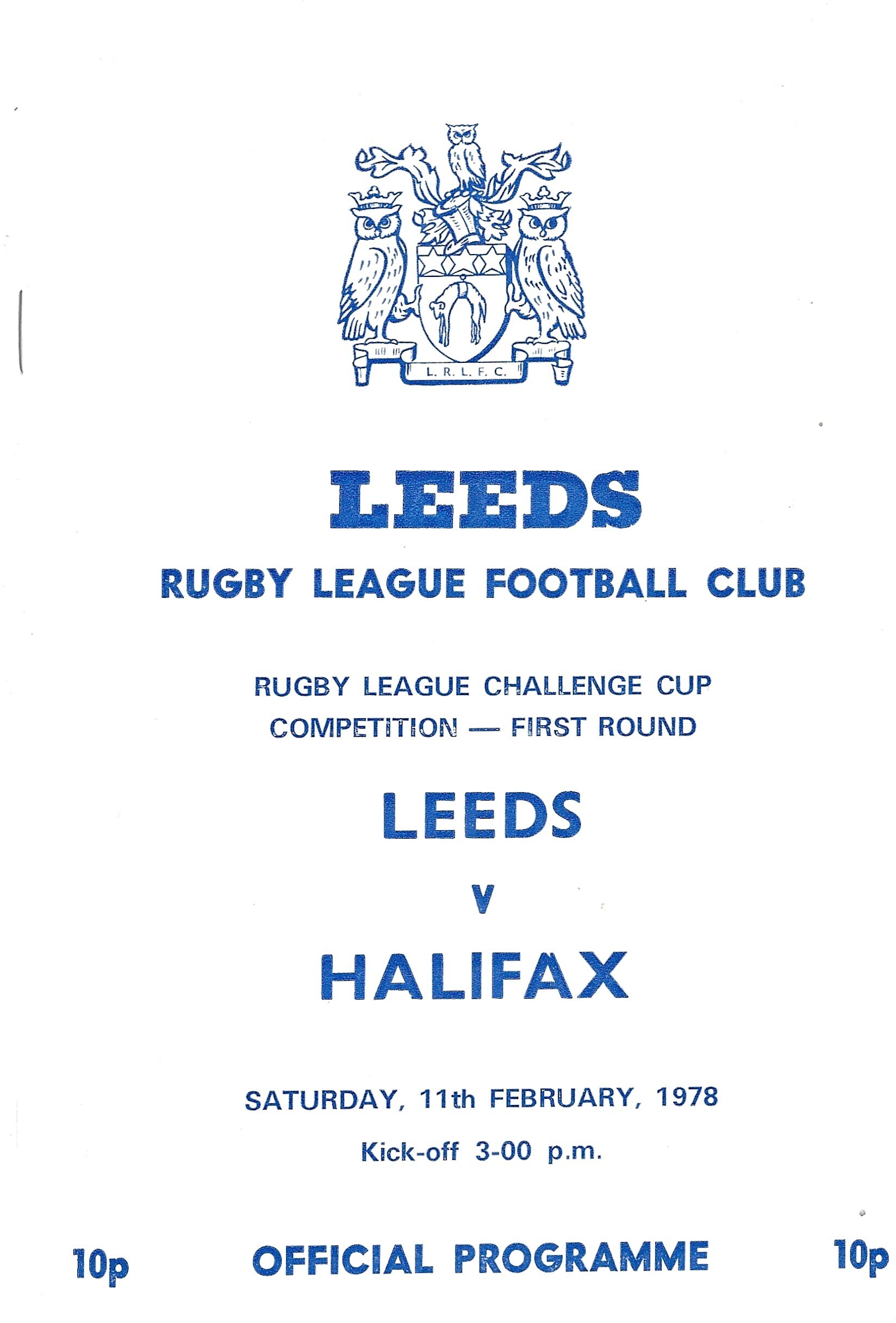 1977/78 Leeds v Halifax (11/02/1978) Rugby League Challenge Cup Competition First Round Rugby League Programme