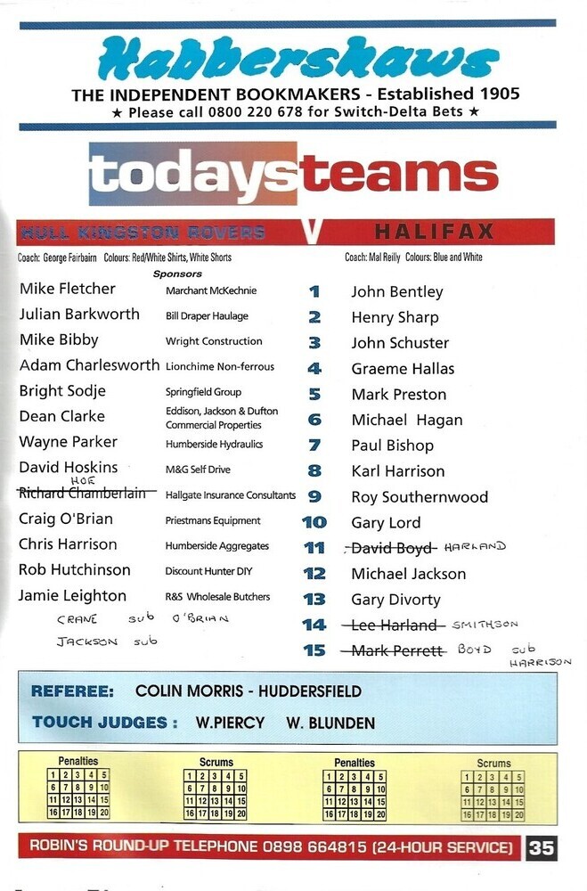 1993/94 Hull Kingston Rovers v Halifax Rugby League Programme