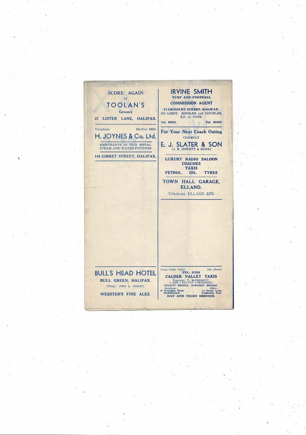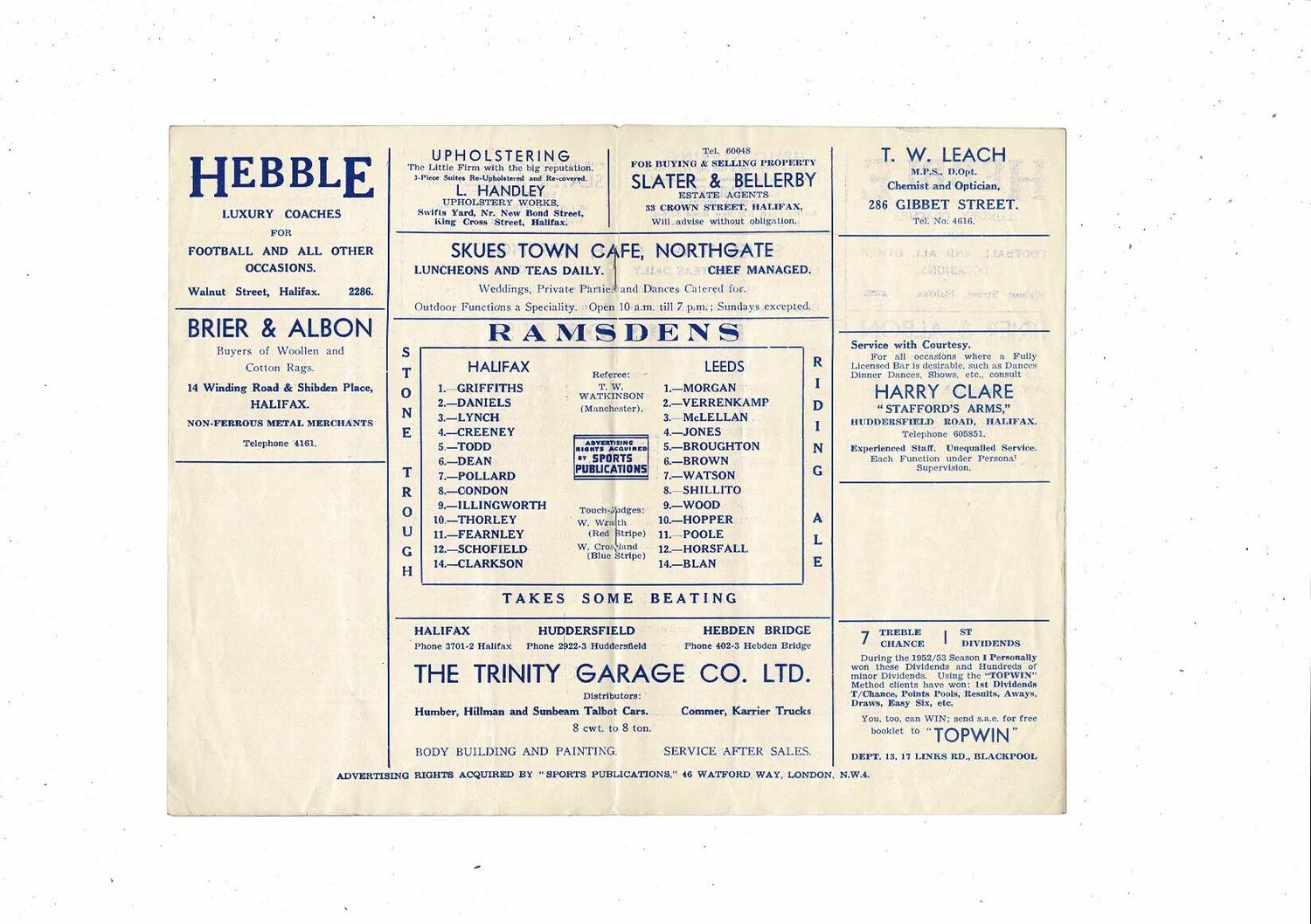 1953/54 Halifax v Leeds (28/11/1953) Rugby League Programme