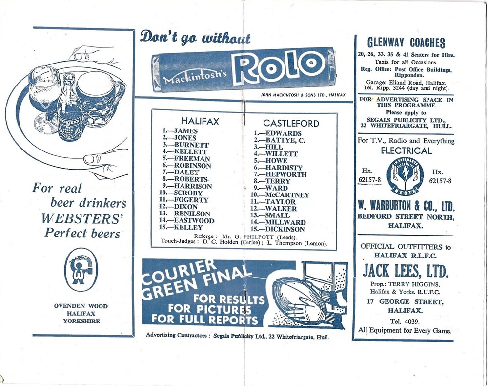 1965/66 Halifax v Castleford Rugby League Programme