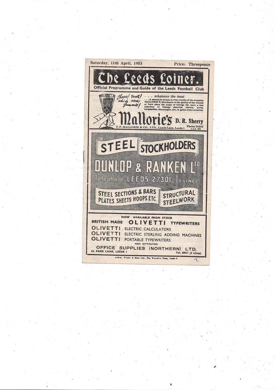 1952/53 Leeds v Huddersfield (11/04/1953) Rugby League Football Programme