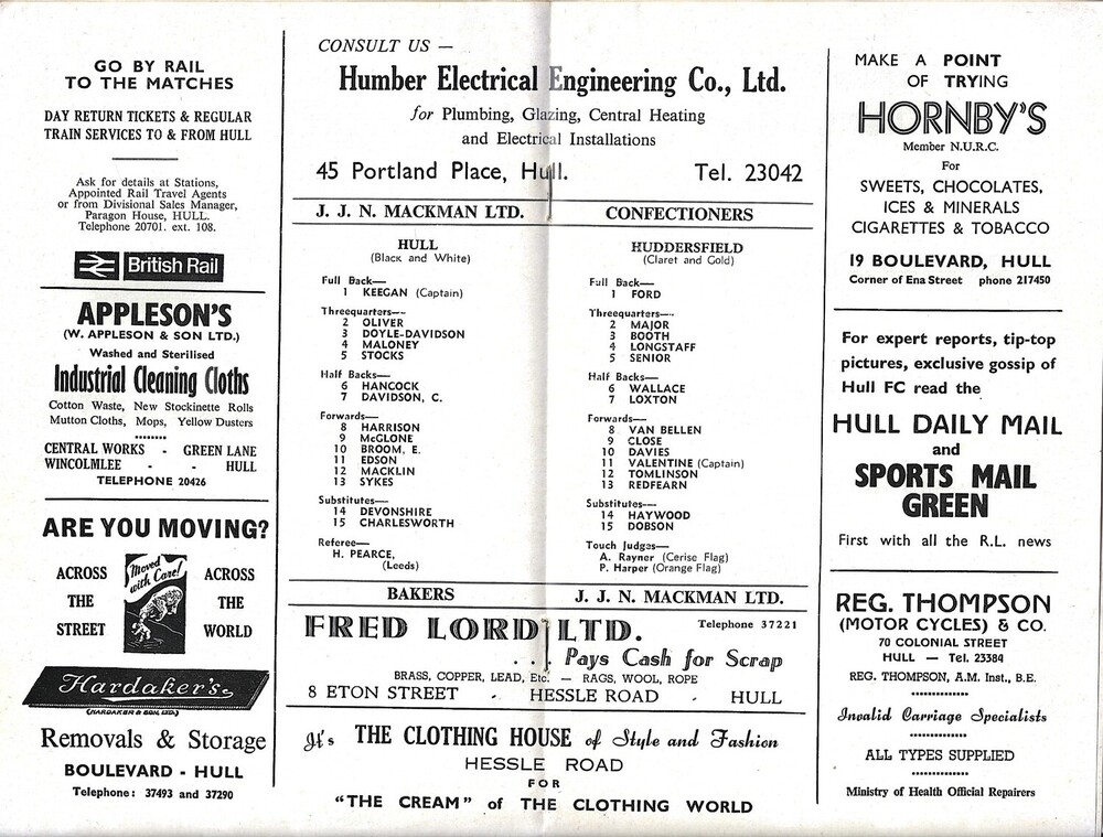 1967/68 Hull v Huddersfield Rugby League Programme