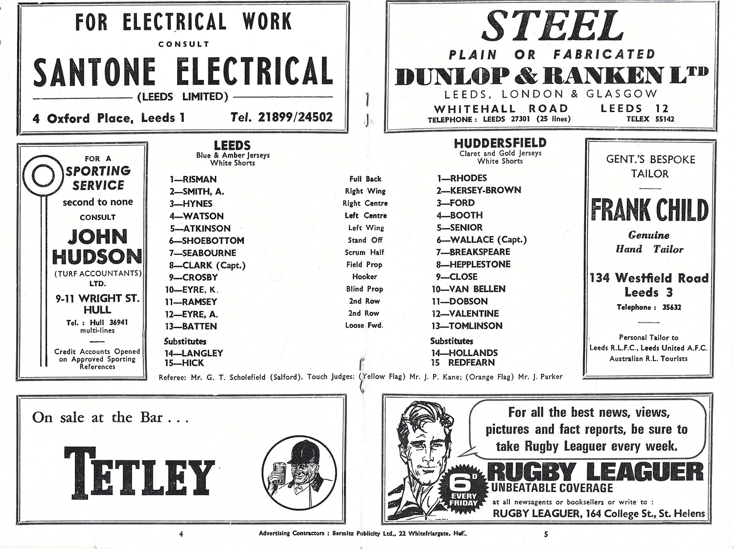 1967/68 Leeds v Huddersfield (12/04/1968) Rugby League Programme