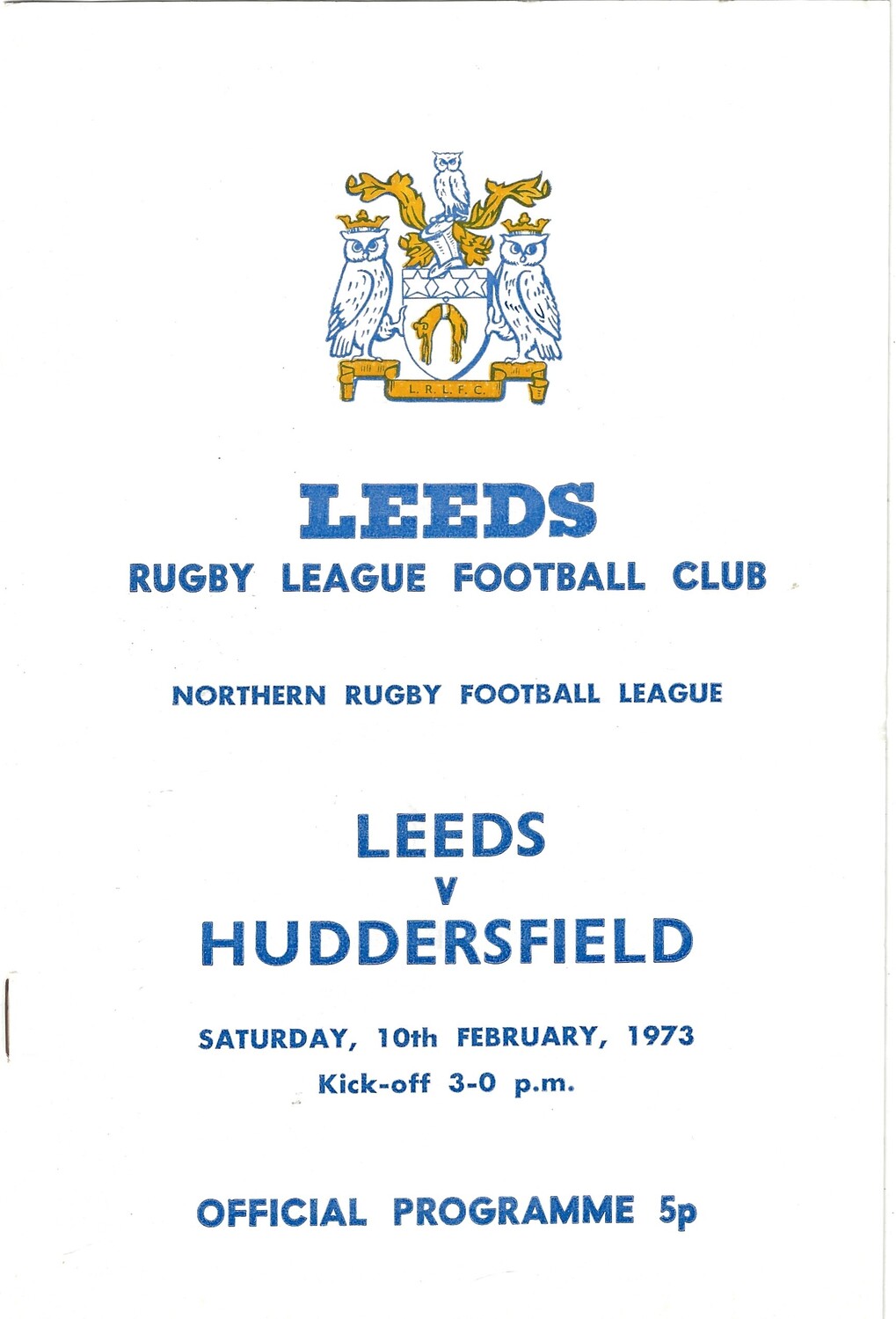 1972/73 Leeds v Huddersfield (10/02/1973) Rugby League Programme