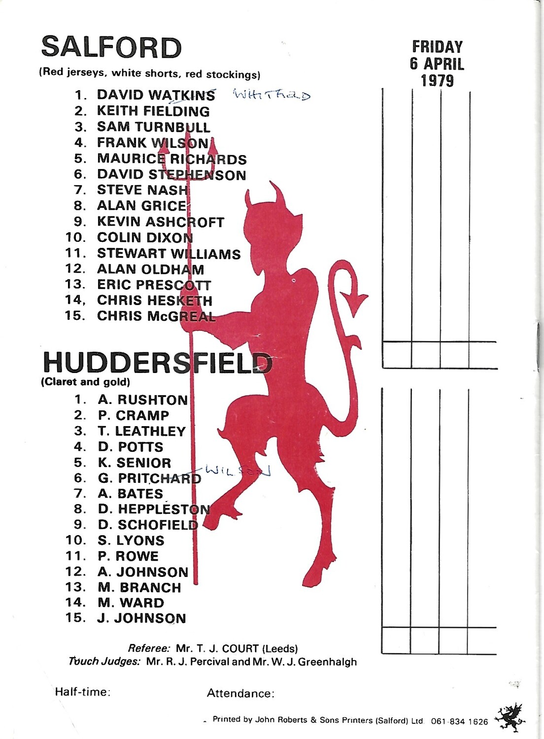 Slight creasing, rusty staples, team changes in ink on team line up page (as per photo).
