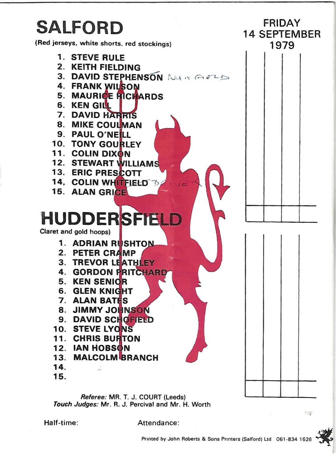 1979/80 Salford v Huddersfield Player's No.6 Trophy 1st Round Rugby League Programme