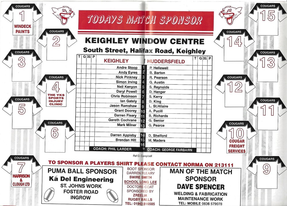 1994/95 Keighley Cougars v Huddersfield Rugby League Programme