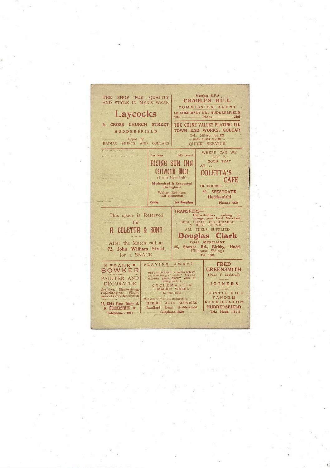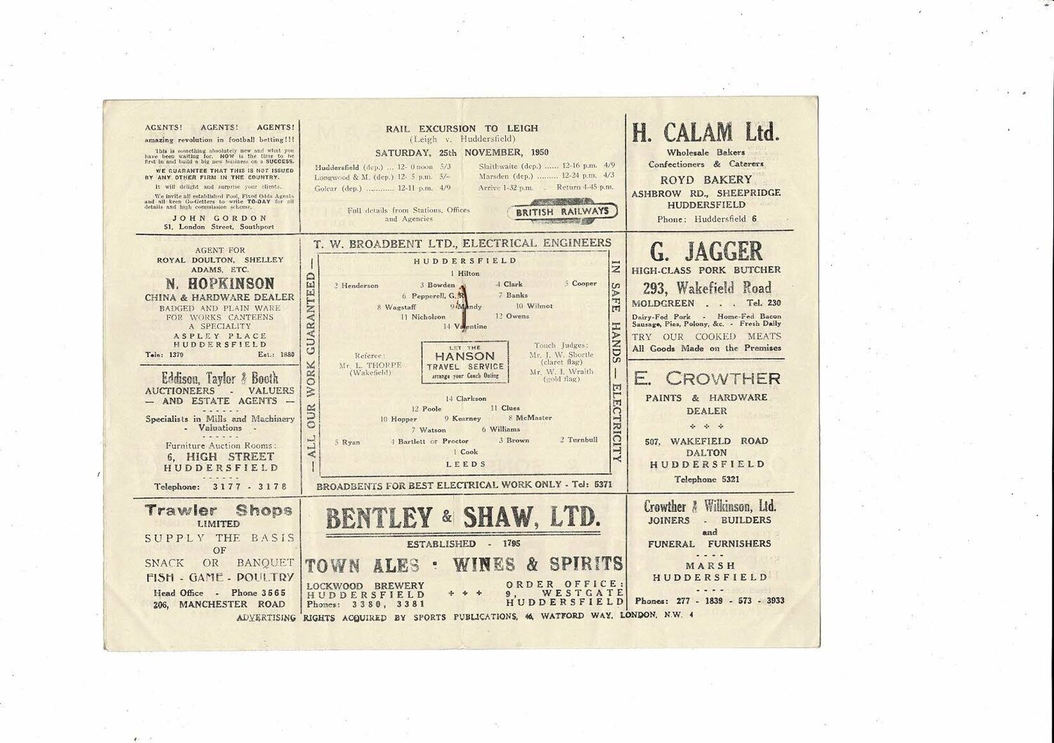 1950/51 Huddersfield v Leeds (18/11/1950) Rugby League Programme Bob Nicholson Testimonial