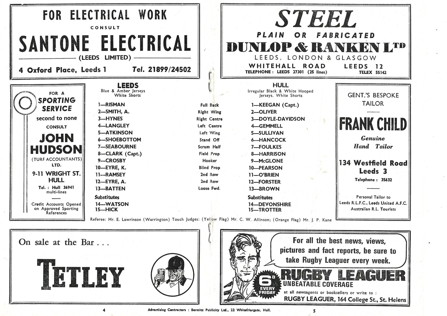 1967/68 Leeds v Hull (06/01/1968) Rugby League Programme