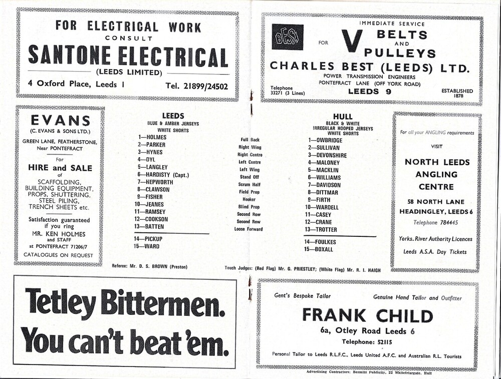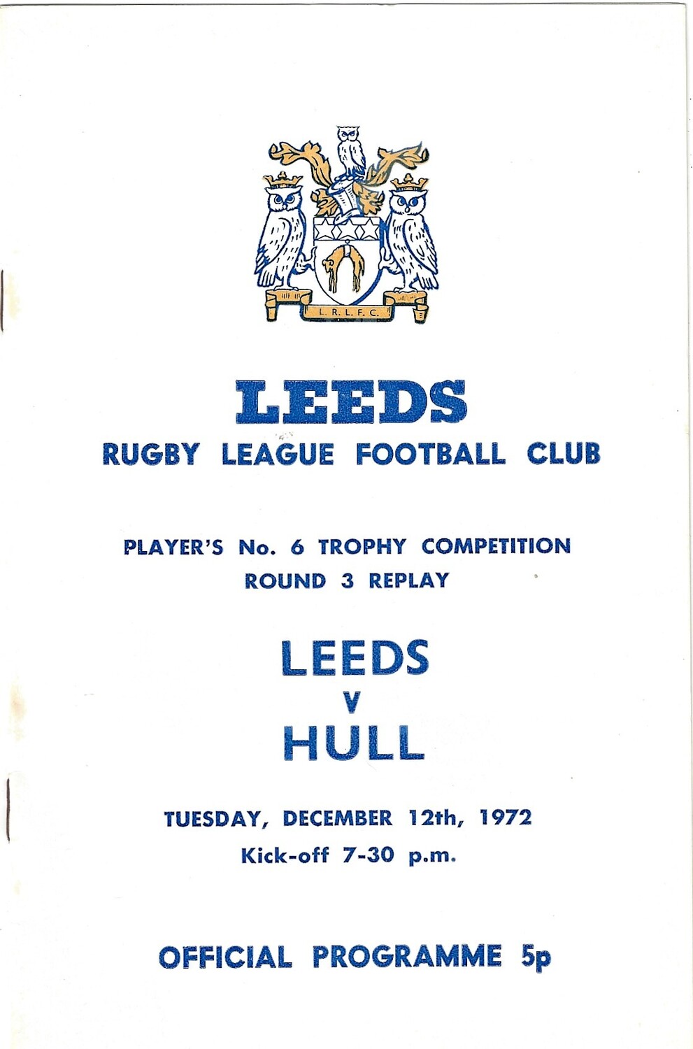 1972/73 Leeds v Hull (12/12/1972) Players No. 6 Trophy Competition Round 3 replay Rugby League Programme