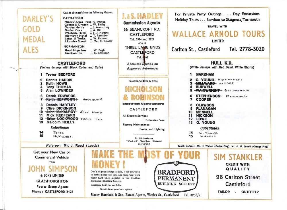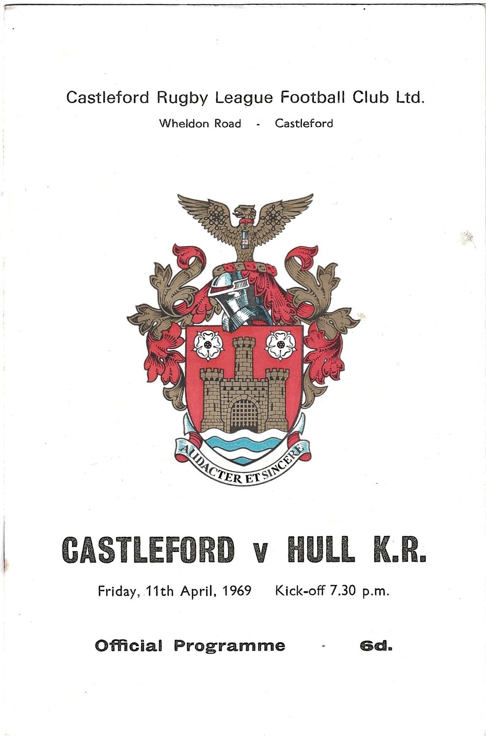 1968/69 Castleford v Hull Kingston Rovers Rugby League Programme