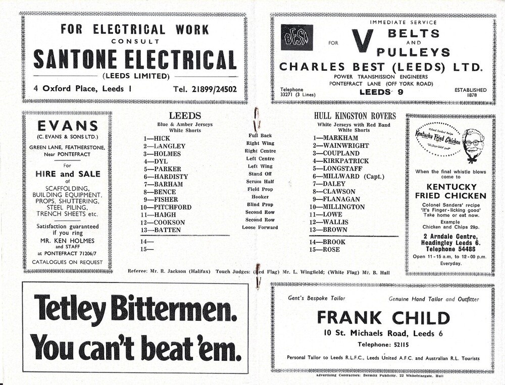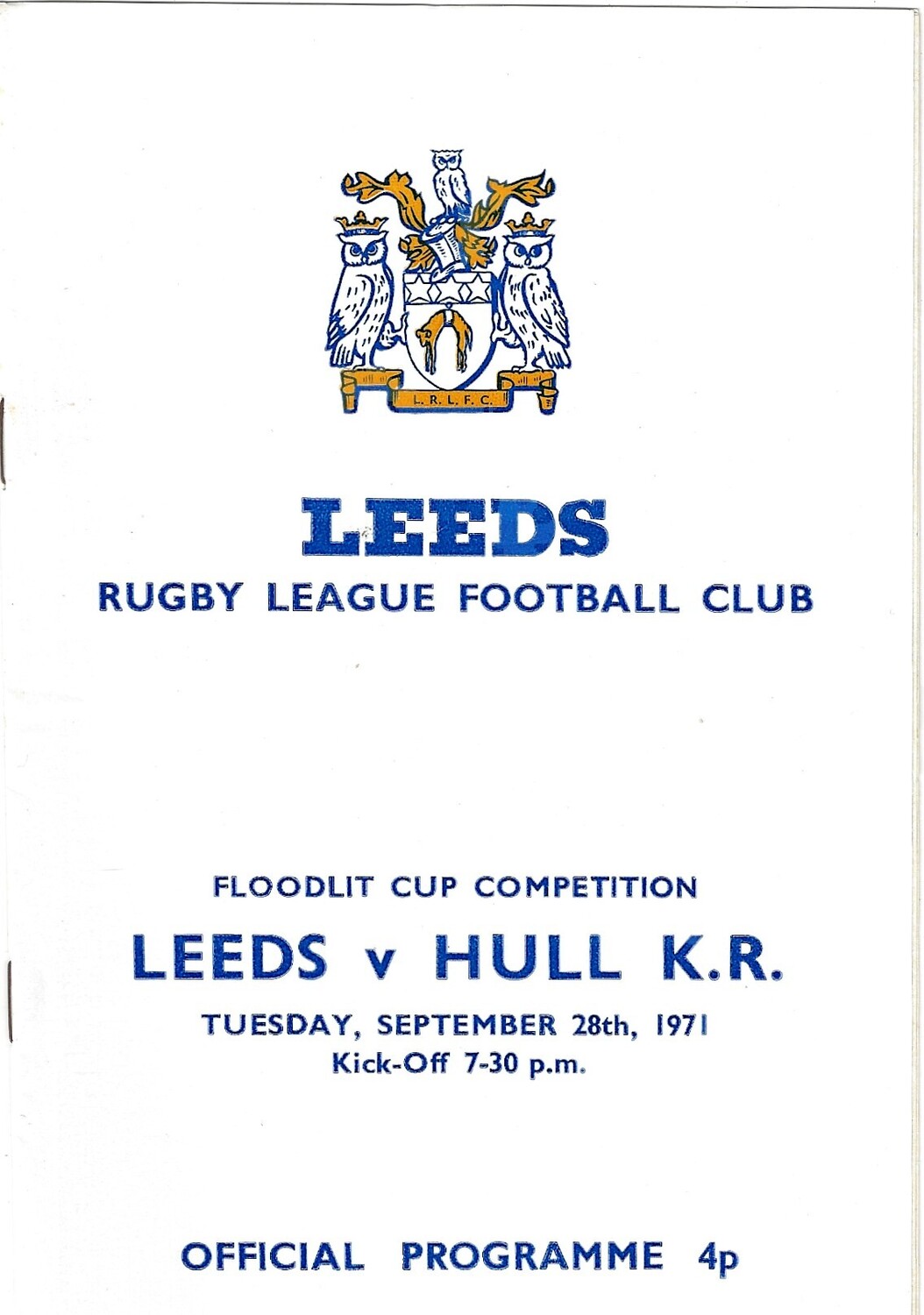 1971/72 Leeds v Hull Kingston Rovers (28/09/1971) BBC 2 Floodlit Cup Competition Rugby League programme