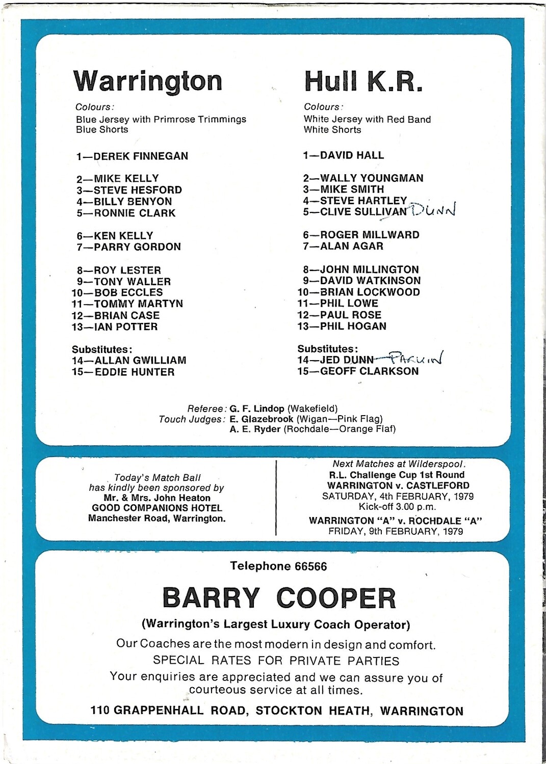1978/79 Warrington v Hull Kingston Rovers Rugby League Programme